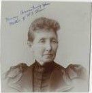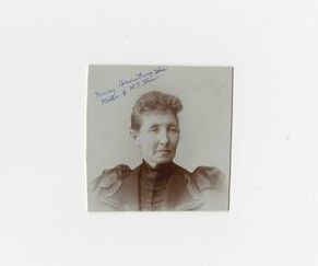 Photograph, Black and white, of woman in a dark colored dress pictured from the chest up. Writing on photograph top left corner reads, " Nancy Armstrong Shaw Mother of R.J. Shaw".