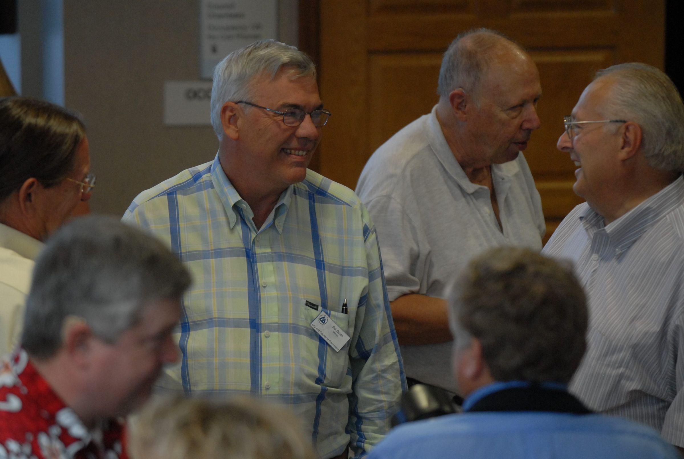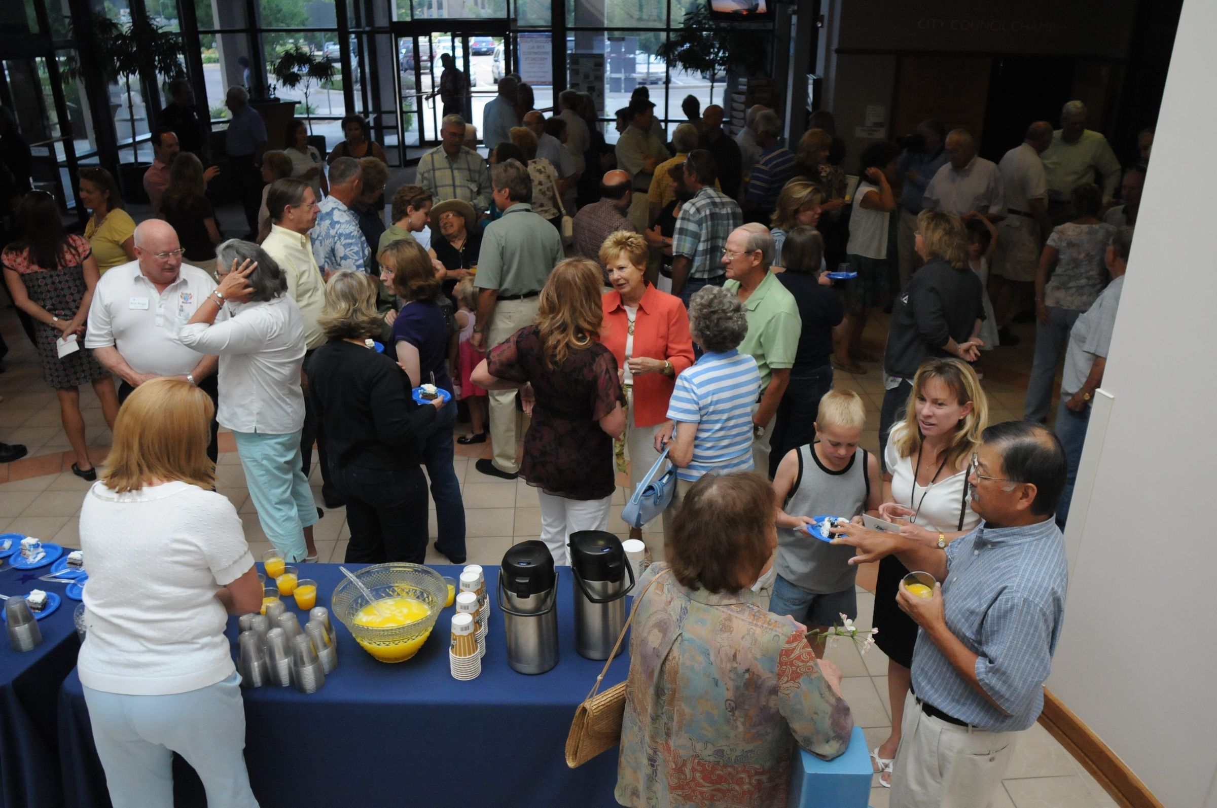 Photographs of various attendees of George DiCiero's 40th Anniversary party. The party is located at the George DiCiero City and County of Broomfield Building. The date of his 40th anniversary was August 1, 2008. Notable attendees were the current Broomfield City Council. On June 24, 2008, minutes from the Broomfield City Council detailed the many accomplishments of Mr. DiCicero.Photograph Details