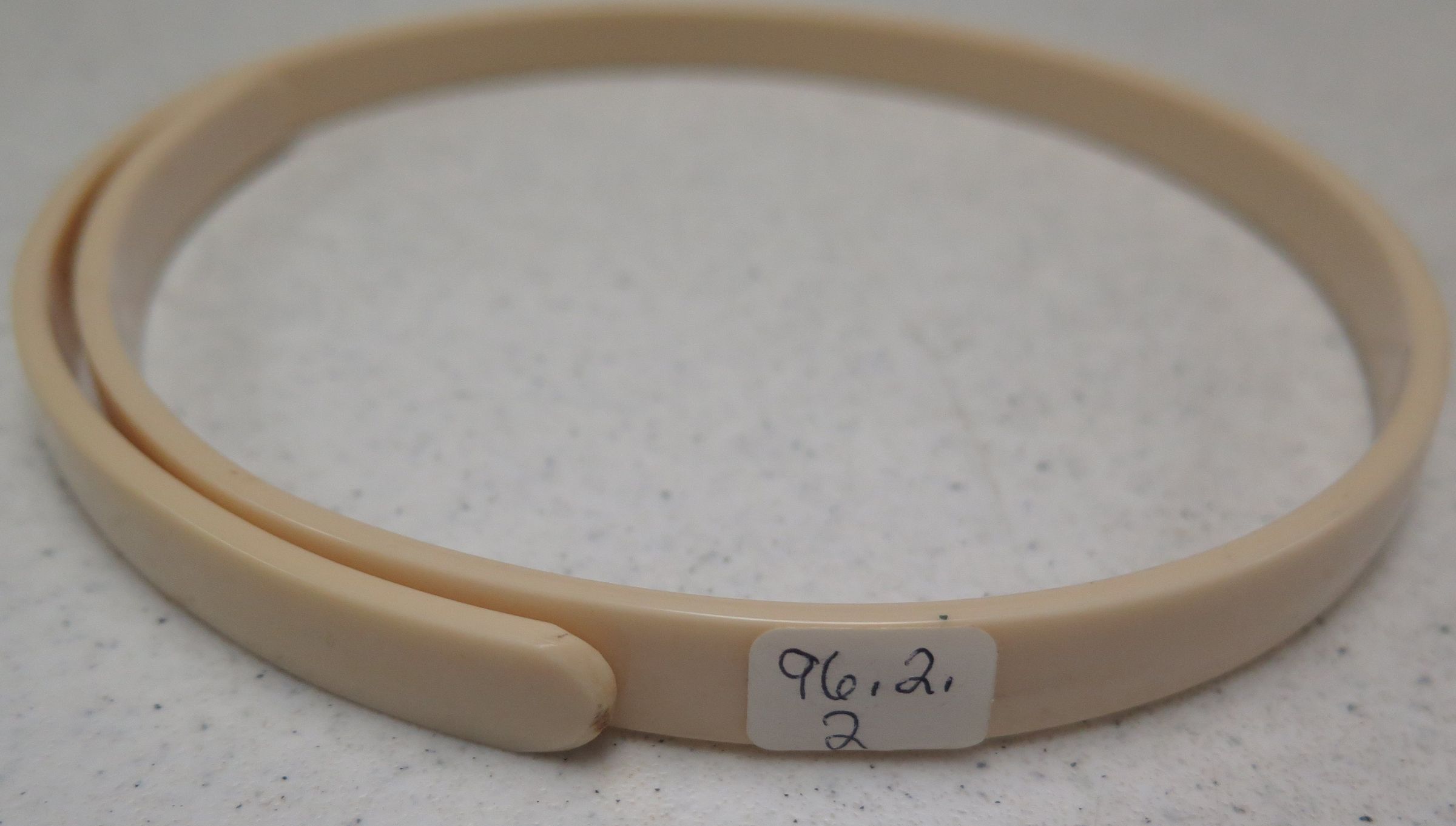 This coiled plastic apron holder 7"(dia) x .5"(D) is off-white in color.