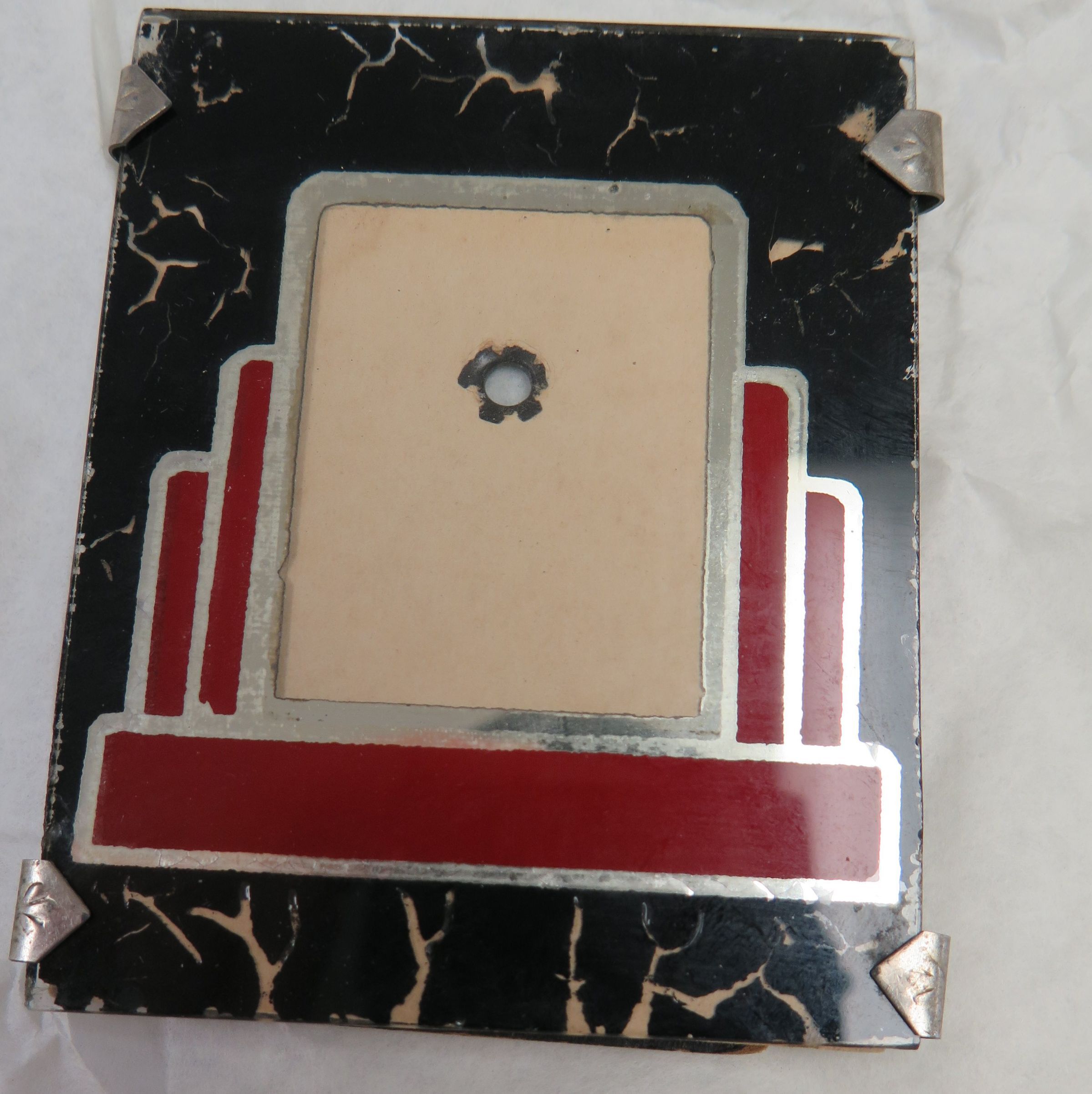 This metal and celluloid art deco styled picture frame measures 4"(H) x 2.5"(W)