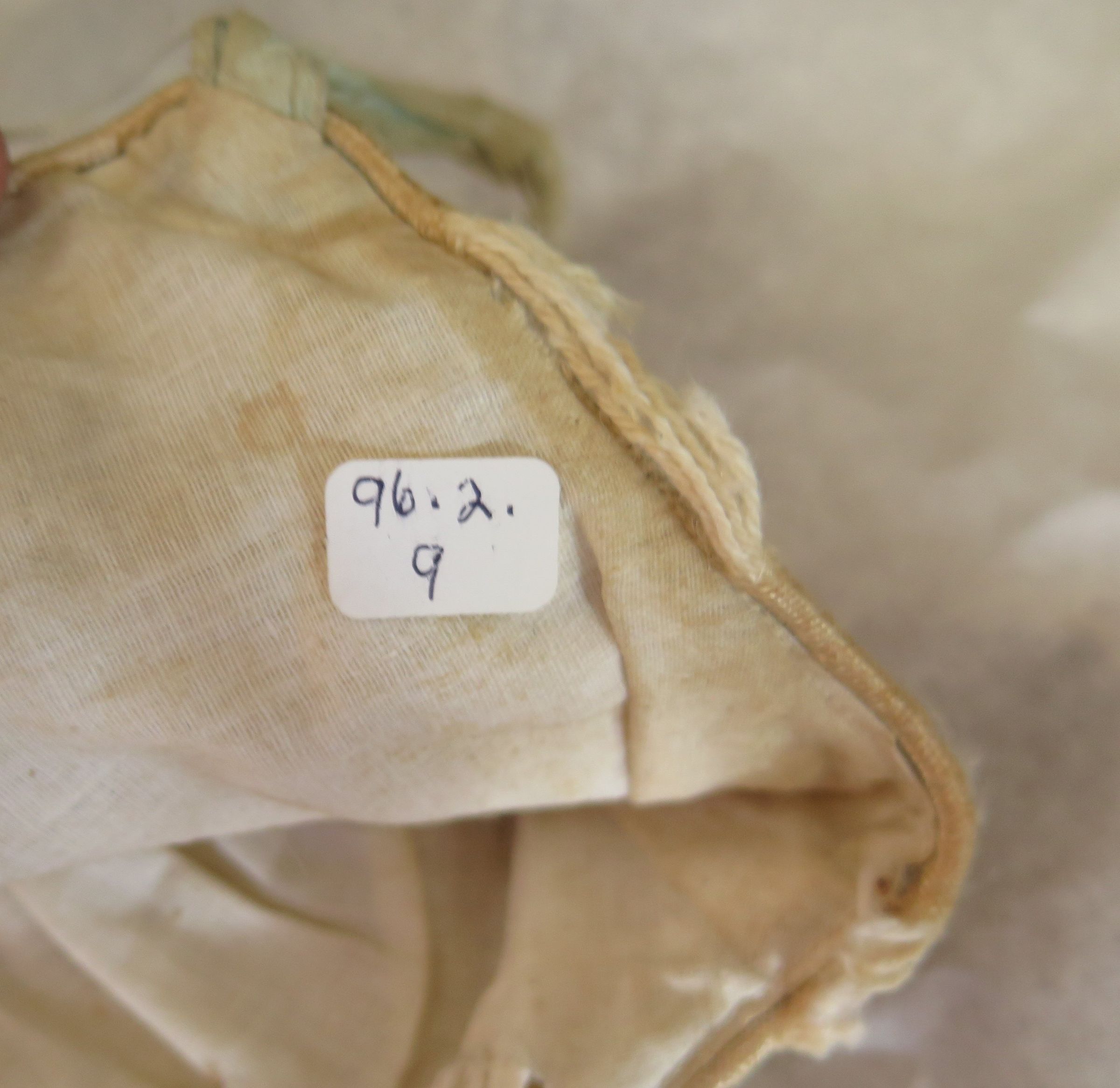 Note: There was a dermestid infestation discovered during the 2015 inventory in this box, this item was damaged. All textiles in the box were vacuumed and frozen (APixley 7/11/2017).