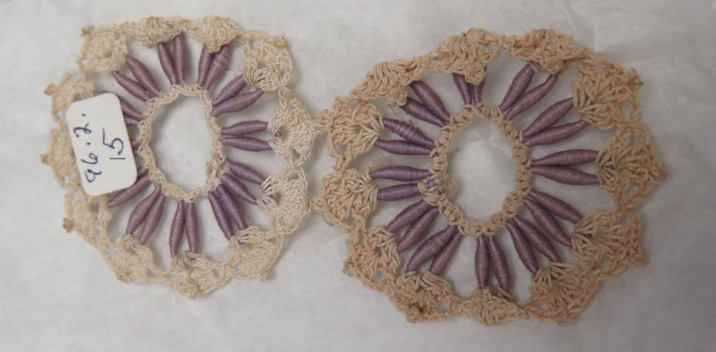 This is a crochet sample of two attached medallions 4.5"(L) x 2"(W).Collection