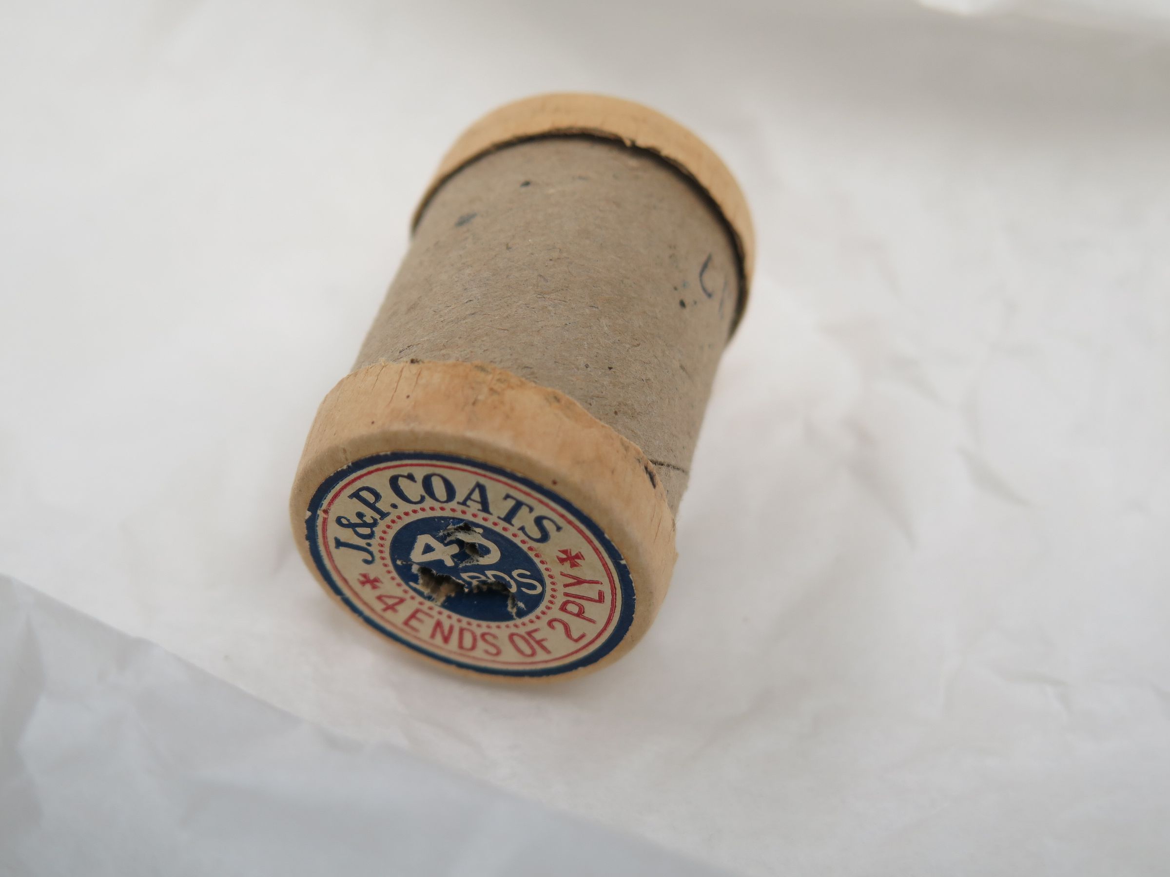 This is a "J. & P. Coats" brand spool. The spool does not have thread on it. The spool measures 1.5" (h) x 1" (dia).