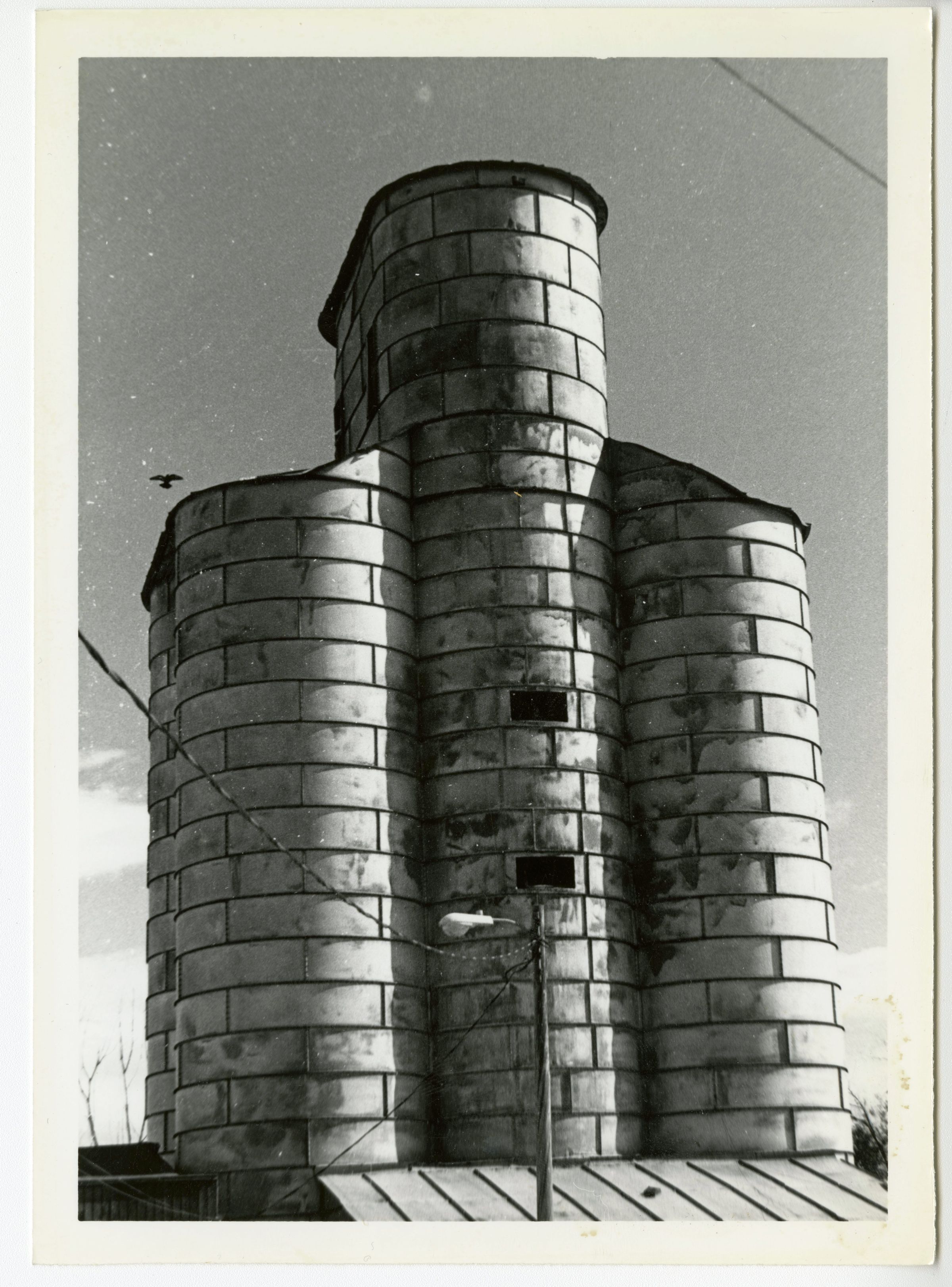 Black and white photo of the Zang grain elevator circa 1993.