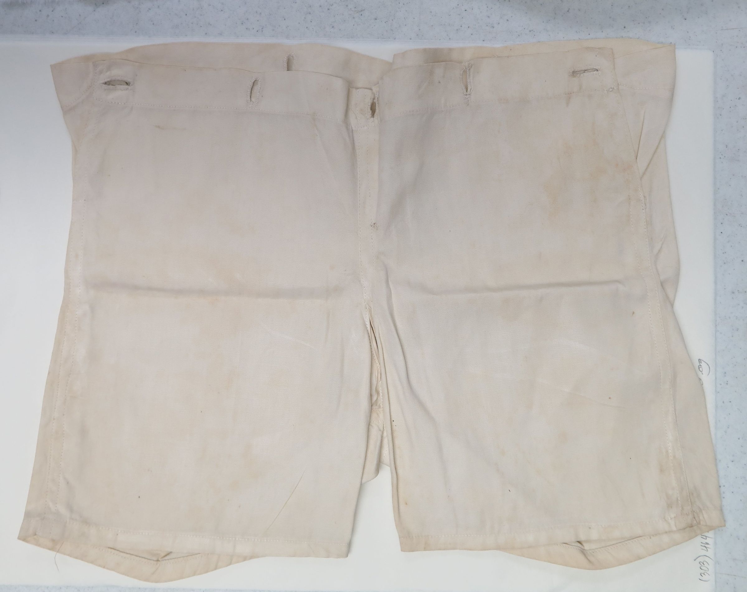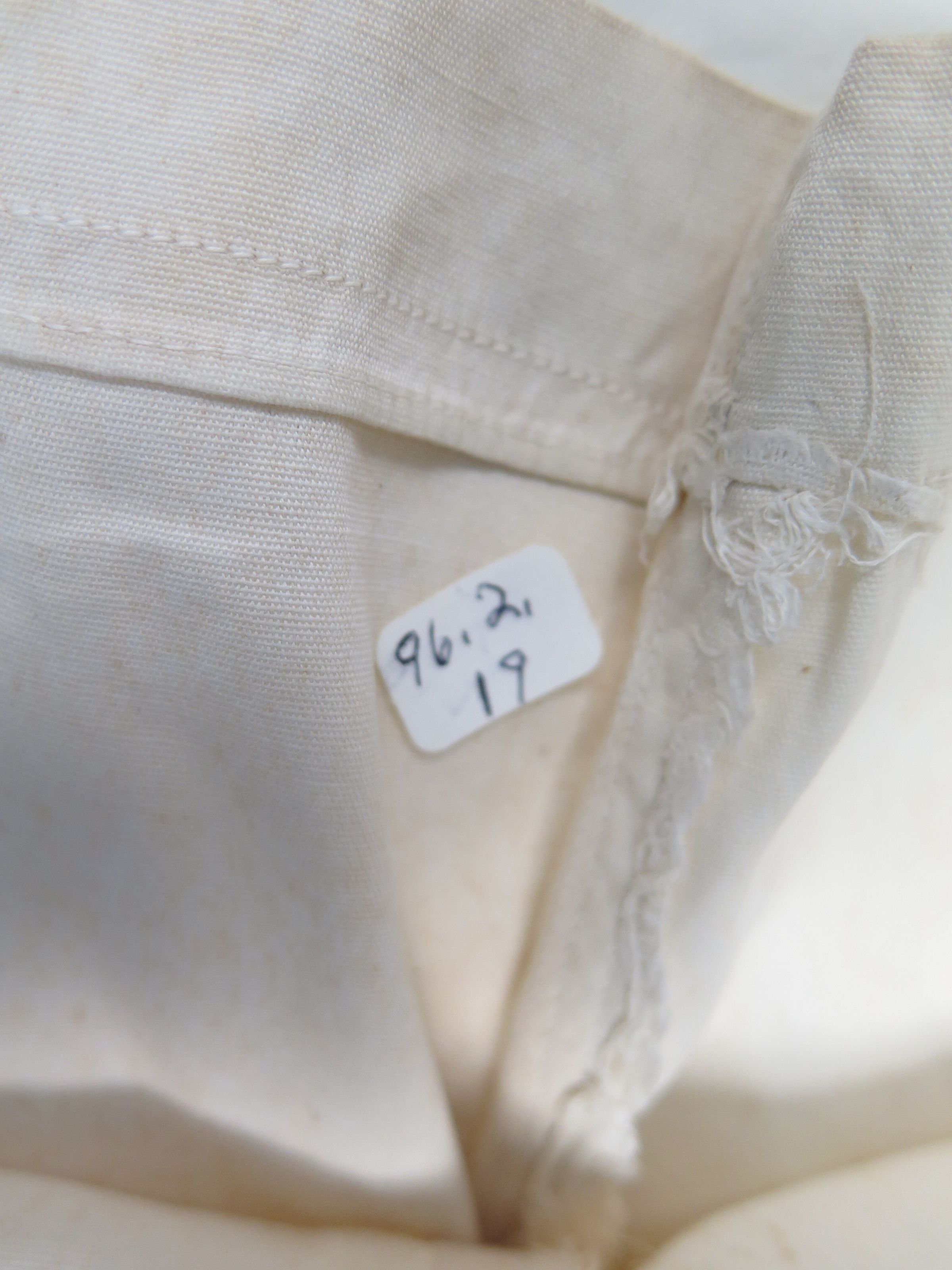 This is a pair of children's white pants. The pants measures 14" (w) x 12" (l).