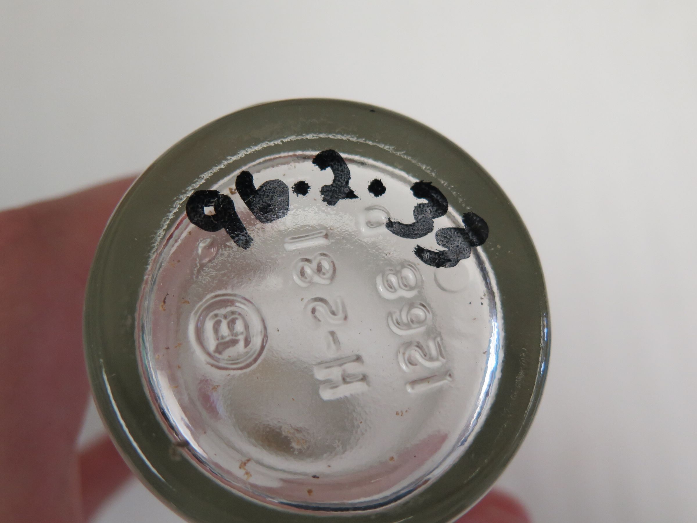 Side of bottle.