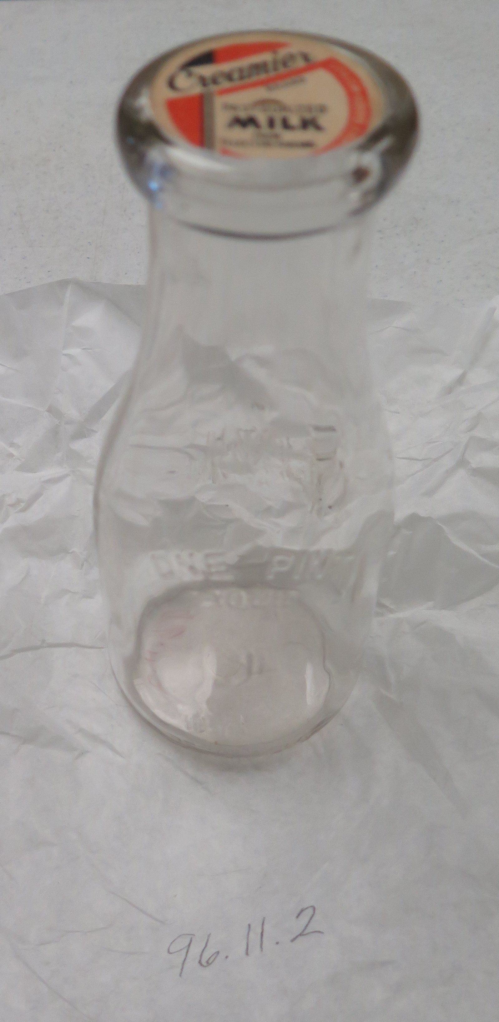Side and top of milk bottle.