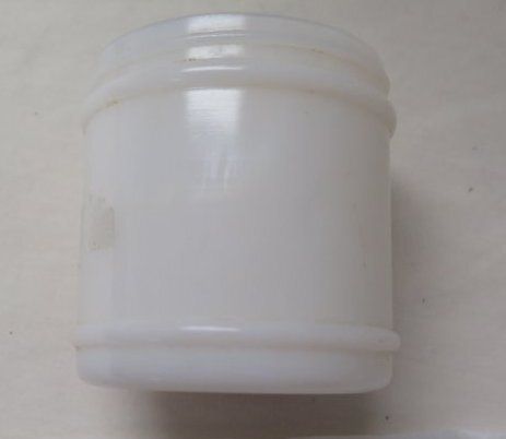 This is a milk white glass jar without a lid. The word "Baker's" appears on the bottom of the jar. The jar measures 3" (h) x 2.5" (dia).