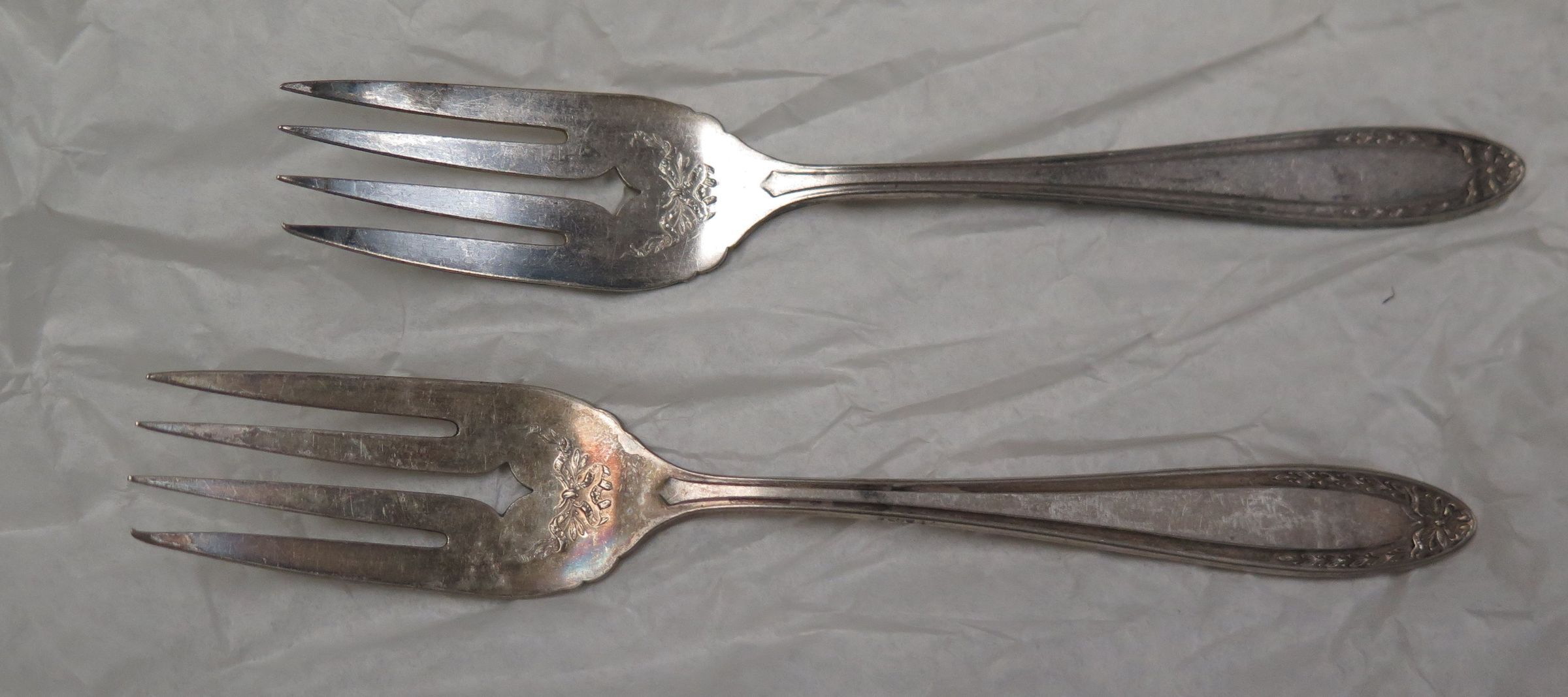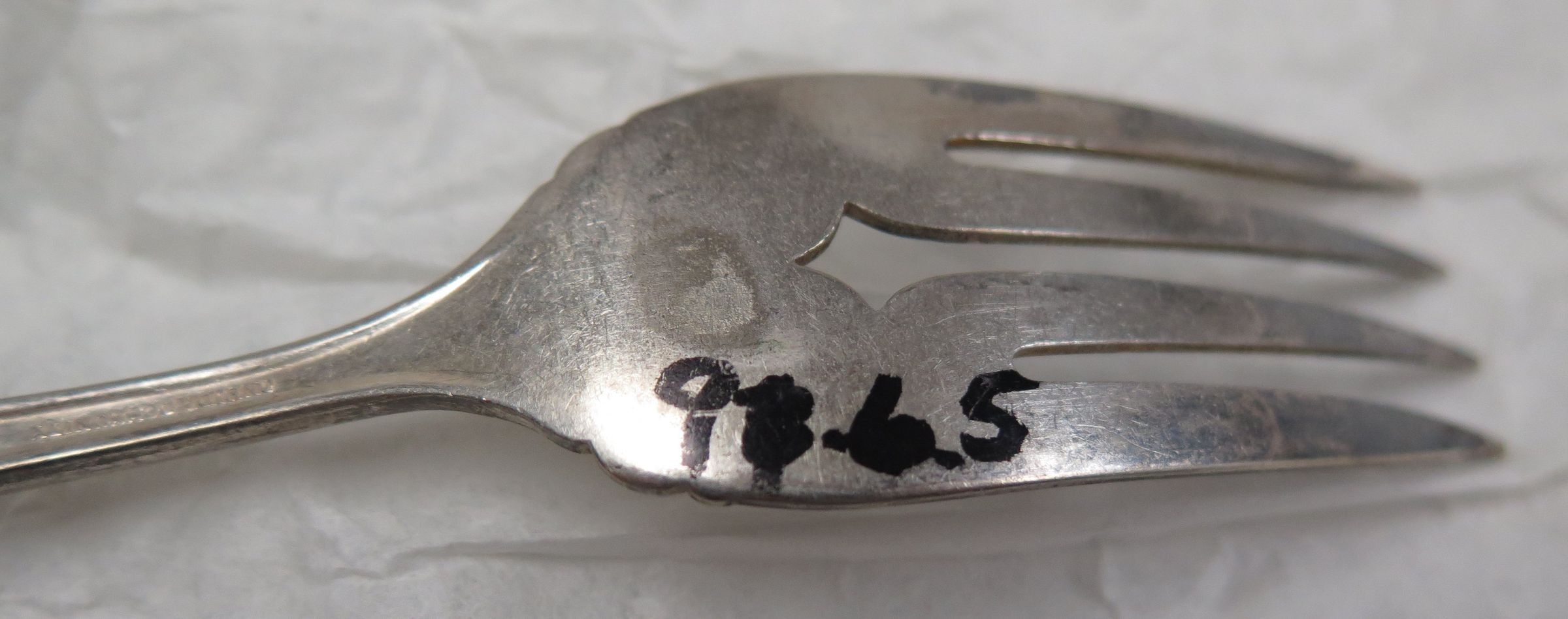 4 iced tea spoons and 14 dinner spoons found together during mini mobile inventory 11/18/2015. 2 forks found numbered 97.6.5 match 3 forks found 97.6.7 (KSteinberg)Collection