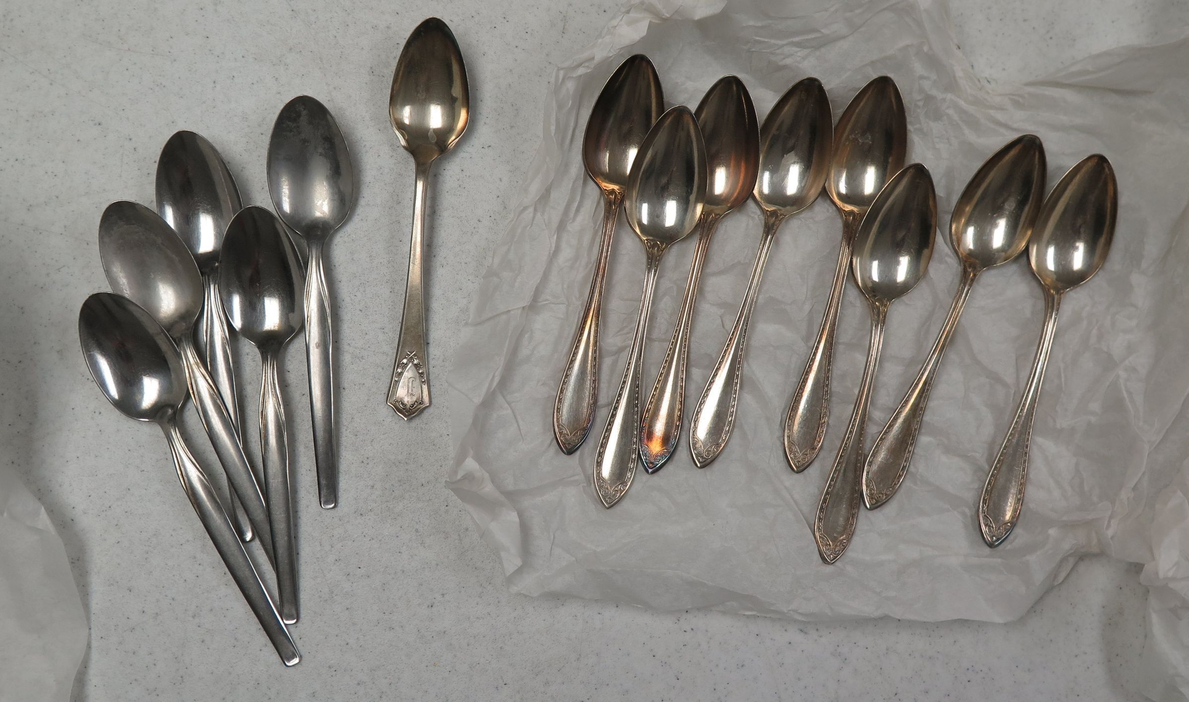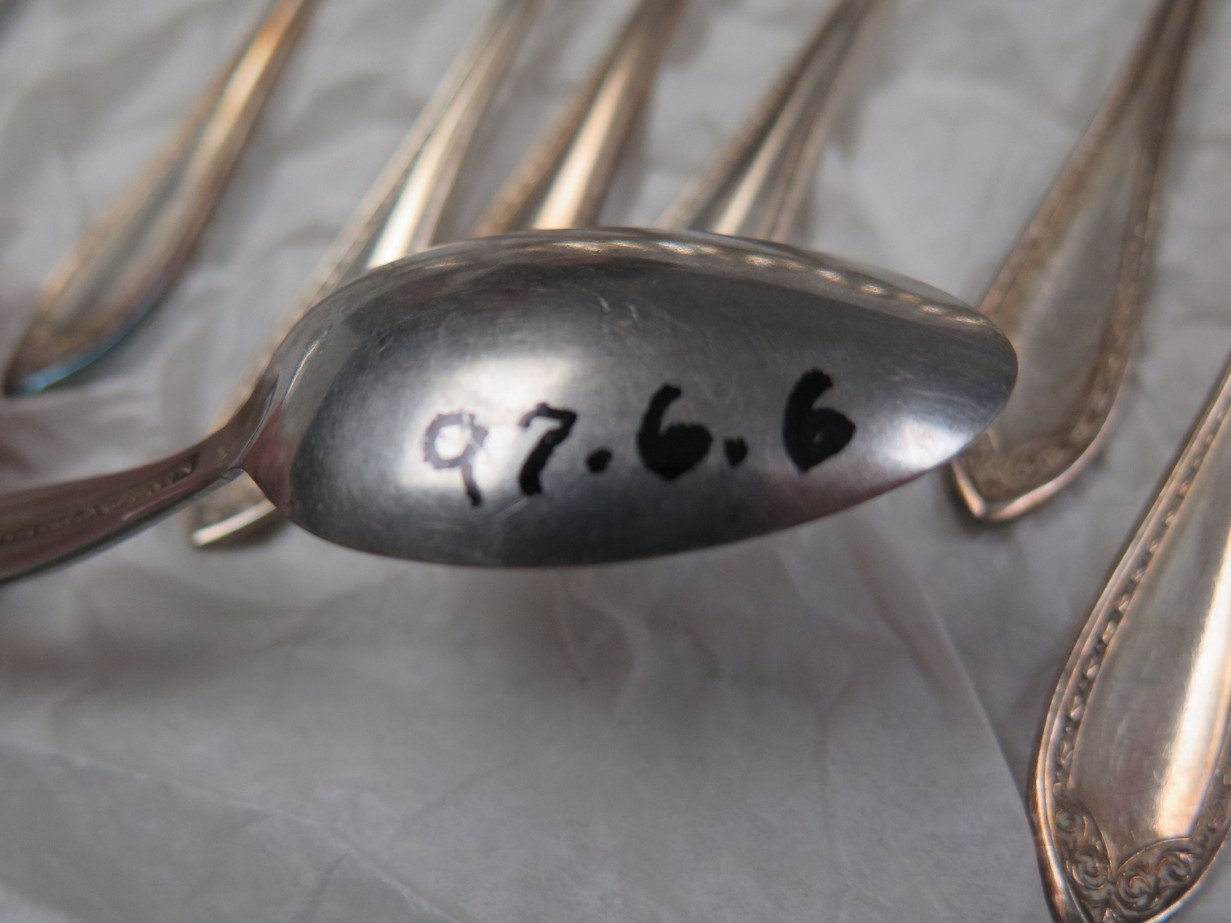 This is a set of 14 metal spoons. 6"(L) x 1"(W) 14 found during inventory of kitchen (ITovar) 14 found during mini mobile inventory 11/18/20015 (KSteinberg)