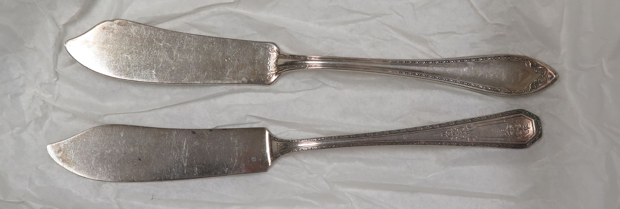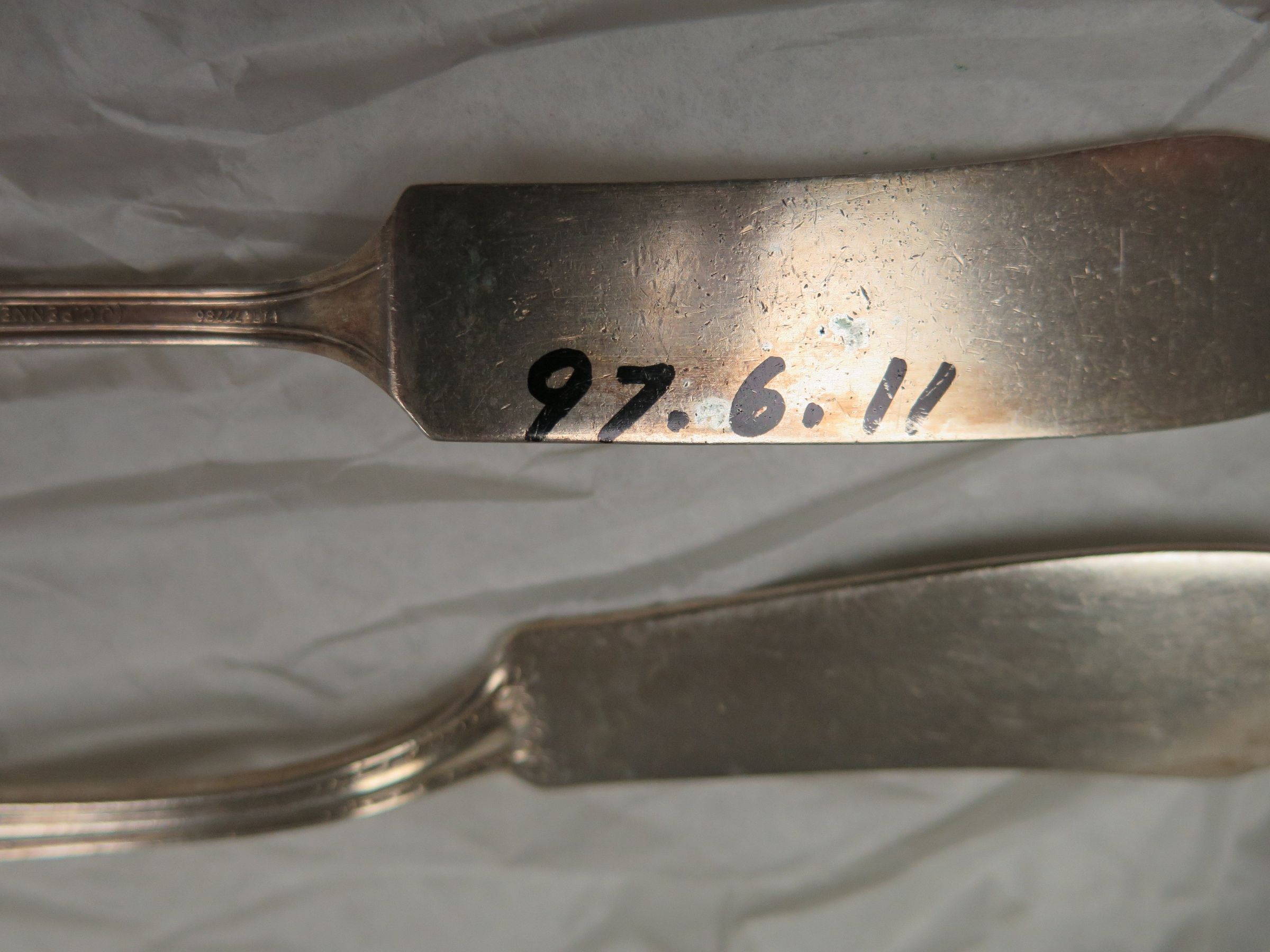 This is a set of two metal butter knifes. 7.5"(L) x 1"(W).