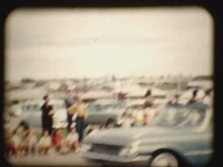 - The seventh car is a white convertible but you we cannot make out the people in the car or what the sign says.