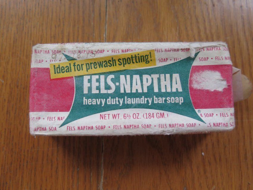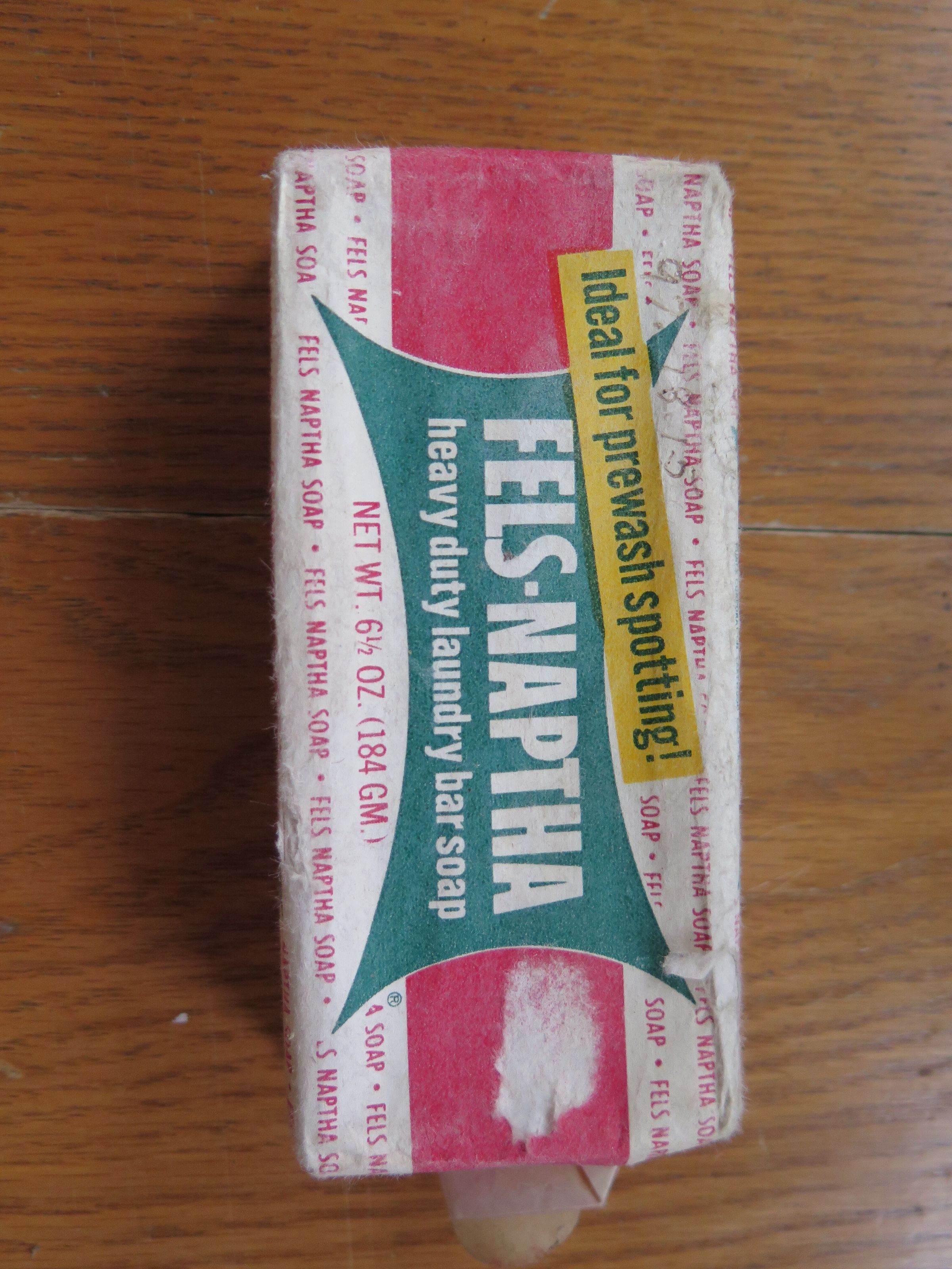 Fels Naptha brand heavy duty laundry bar soap. This was and is still considered a laundry and all purpose soap. Is still on the market today. The soap measures 2" (w) x 4.75" (l).