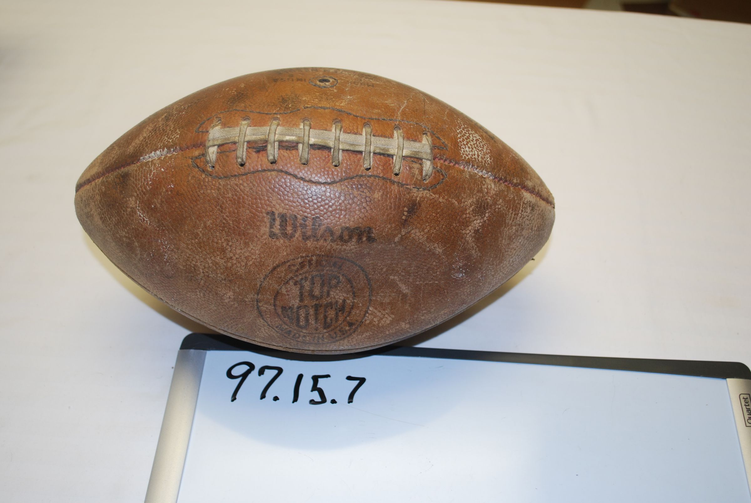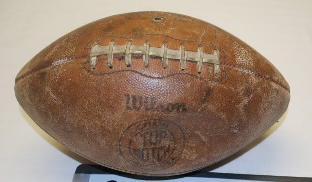 This is a brown leather "Wilson" football with white stitching. The football measures 7.5" (h) x 12" (l).