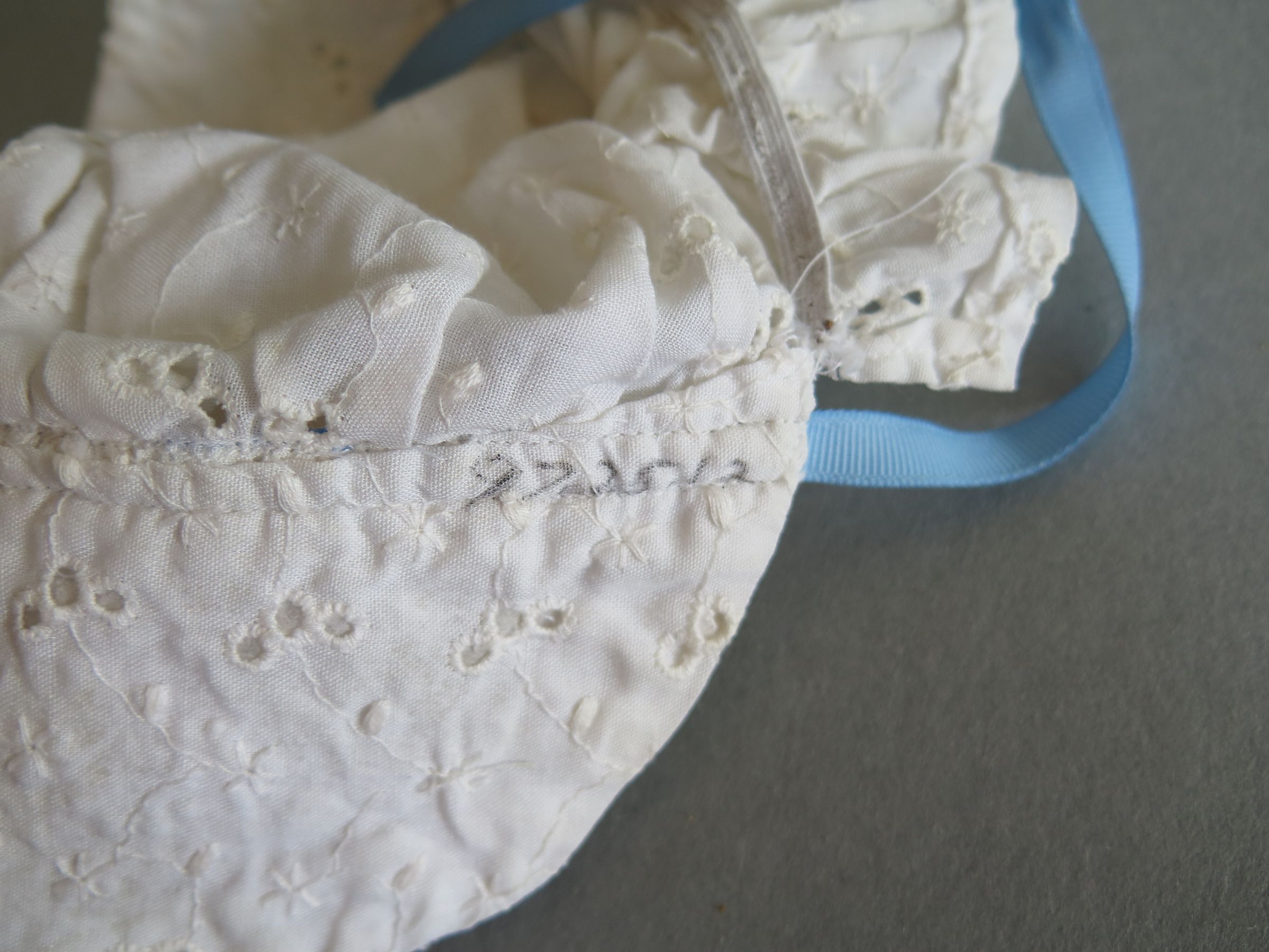 Note: There was a dermestid infestation discovered during the 2015 inventory in this box, this item was not damaged excessively. All textiles in the box were vacuumed and frozen (APixley 7/11/2017).
