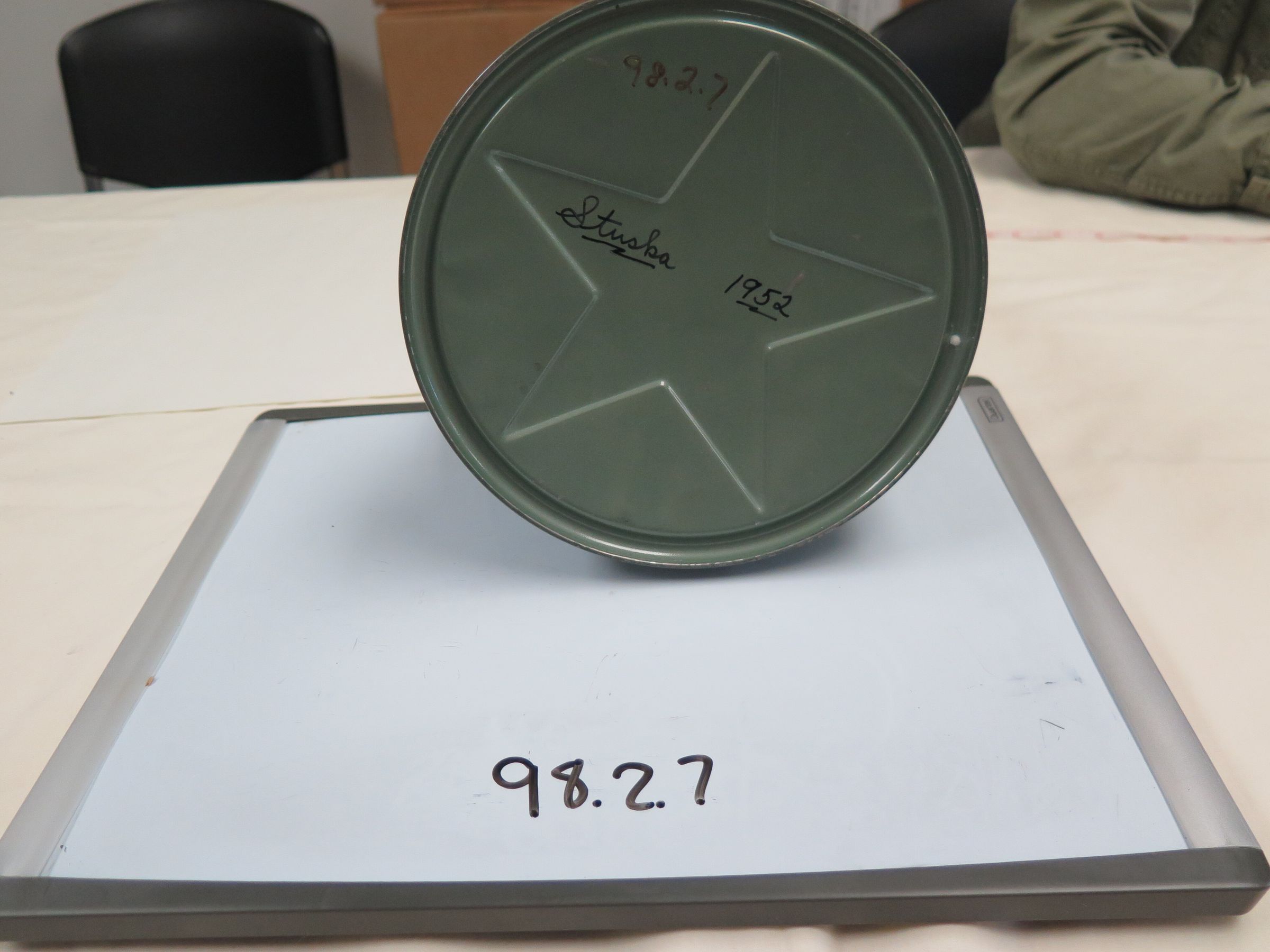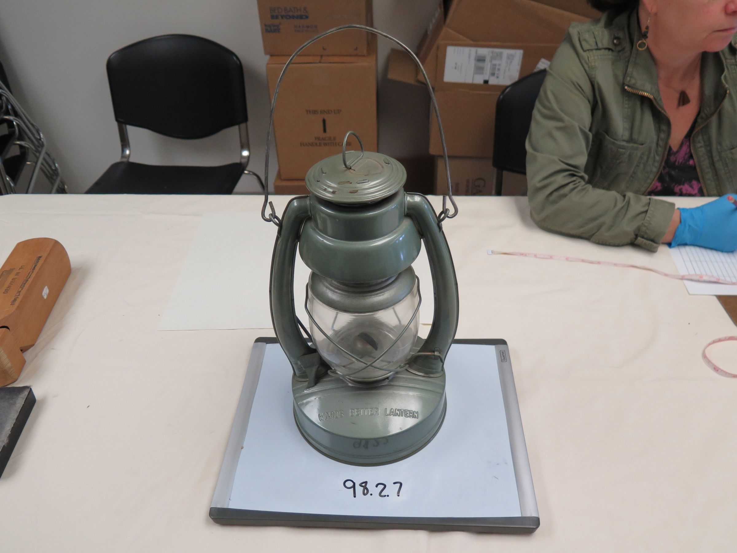 This green "Wards Better Lantern" measures 14" (h) x 7.5" (d). The bottom is marked "Stuska 1952".
