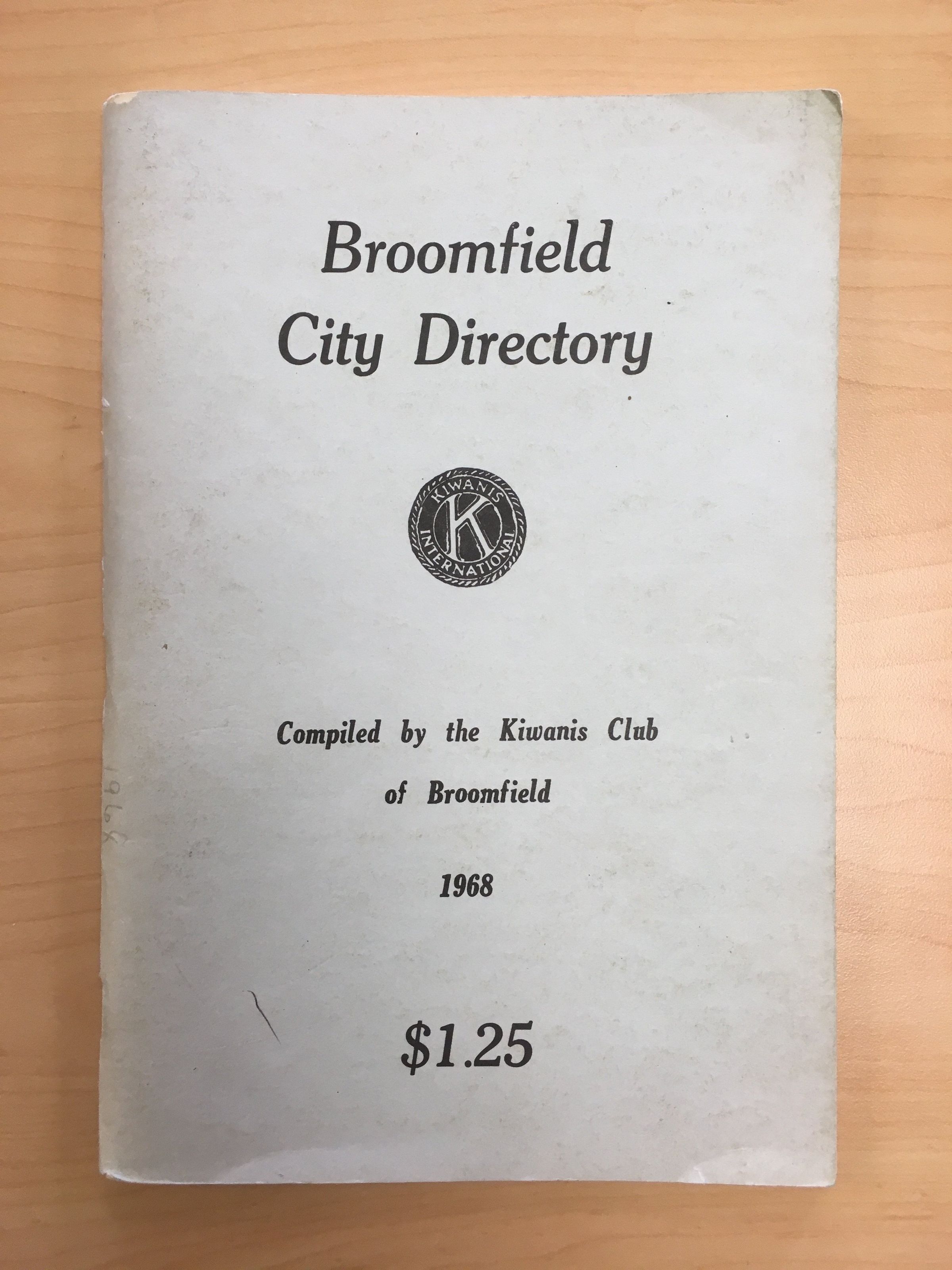 Broomfield City Directory, 1968, Compiled by the Kiwanis Club of Broomfield. $1.25 Pale blue-gray cover.