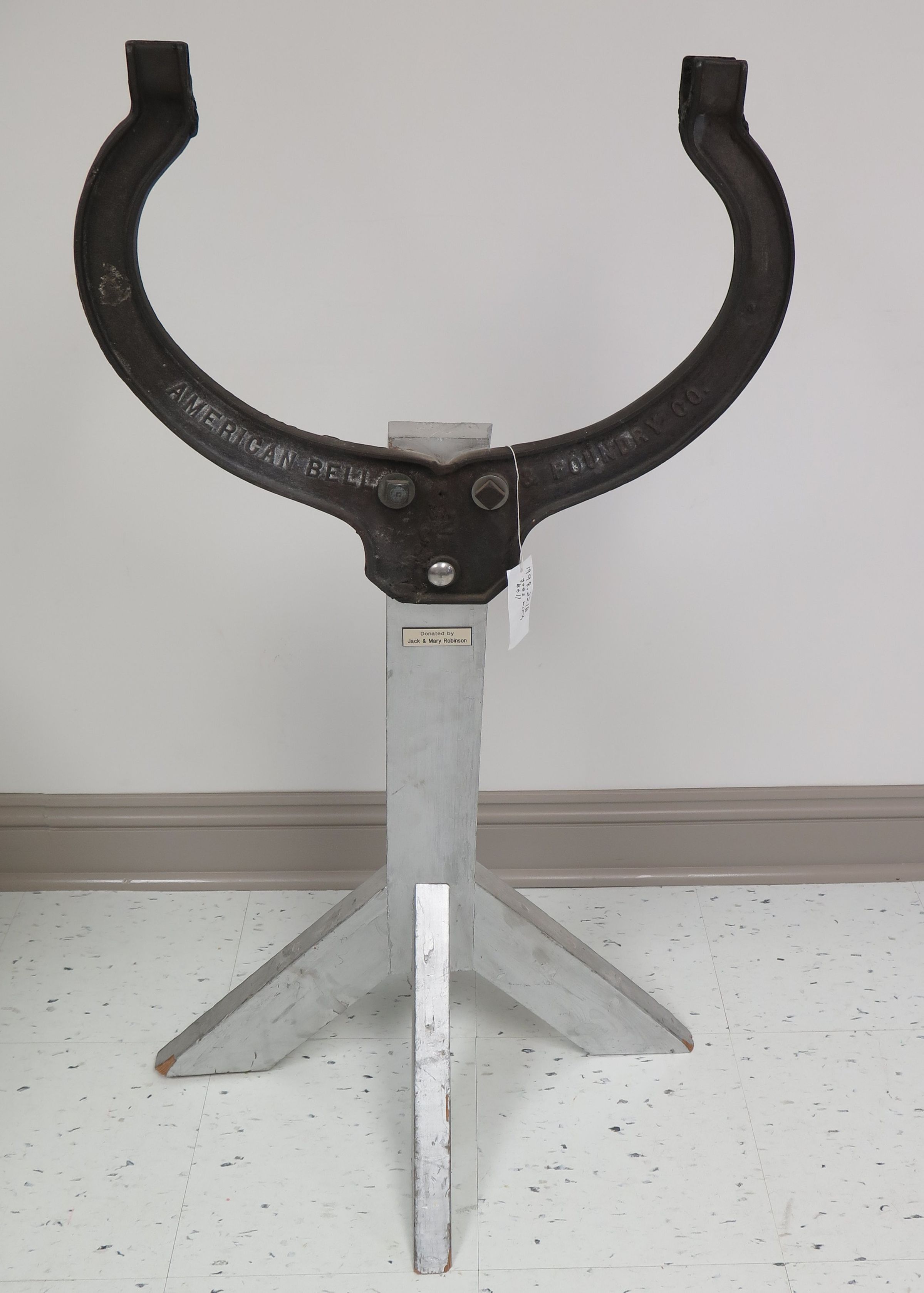 This is a metal belll that has the number 2 and the words "American Bell" on it. The bell measures 22" (h) x 16" (w) x 13" (d). There is a component stand (b) that goes with this bell. The stand measures 41" (h) x 22" (w).