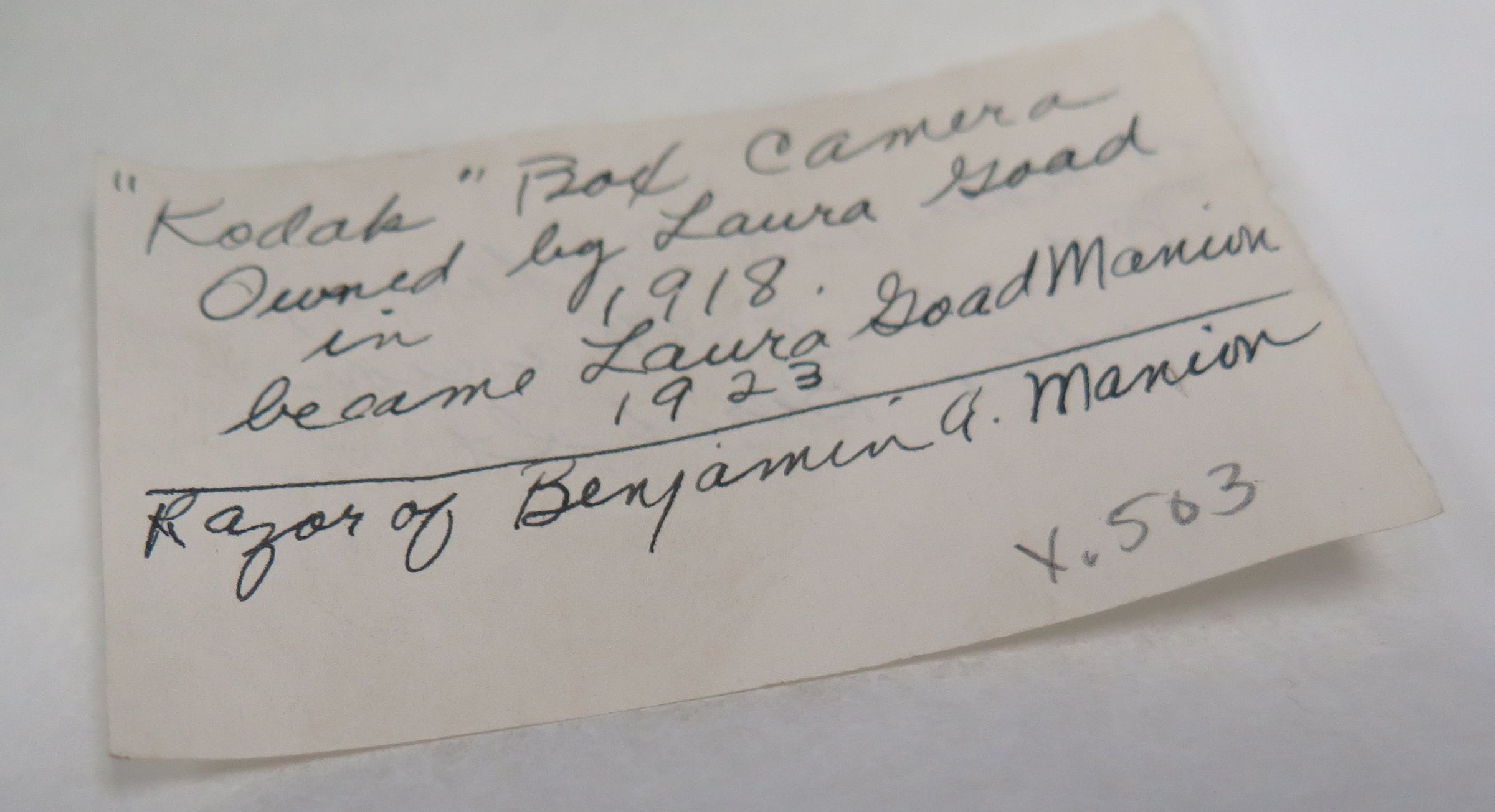 "Kodak" Box Camera owned by Laura Goad in 1918. She became Laura Goad Manion in 1923.