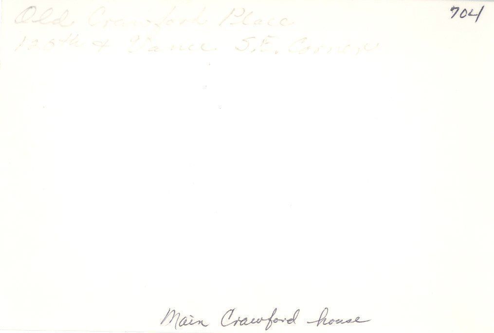 Photograph of the Main Crawford house located on the S.E. corner of 120th and Vance. For Sale sign in the lower left.