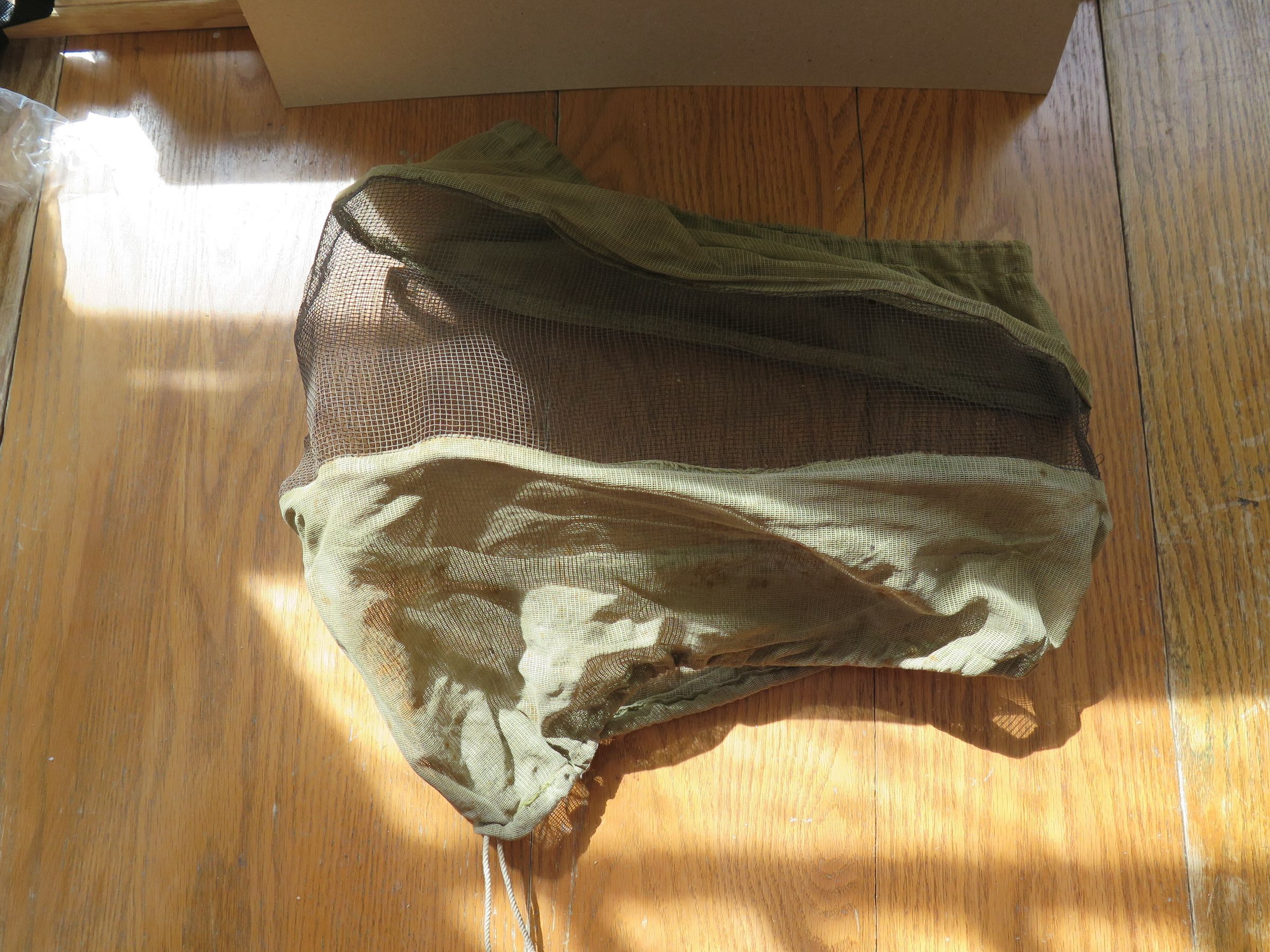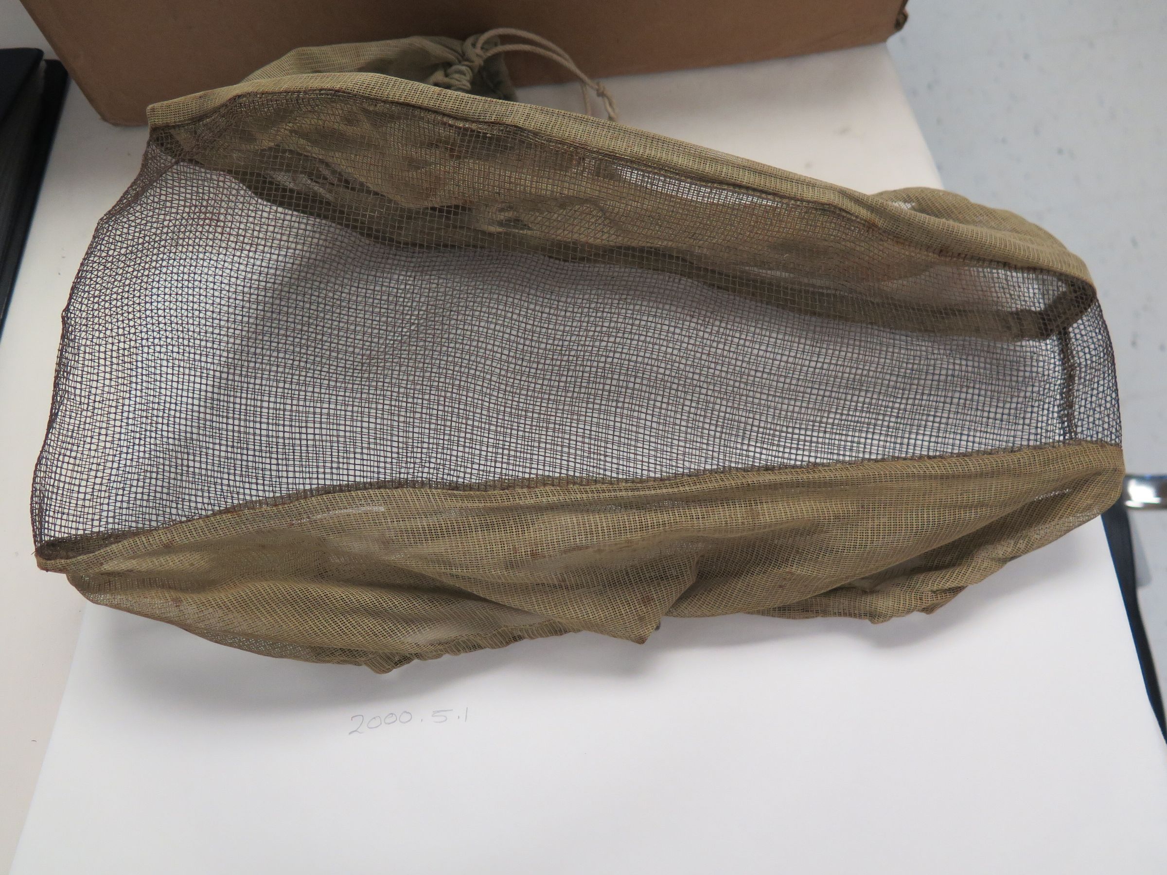 This is described as a honey net on accession documentation. It is really a beekeeper's veil, which would be worn over a hat and pulled down over the face and neck. The veil measures 10" (w) x 16.5" (l).
