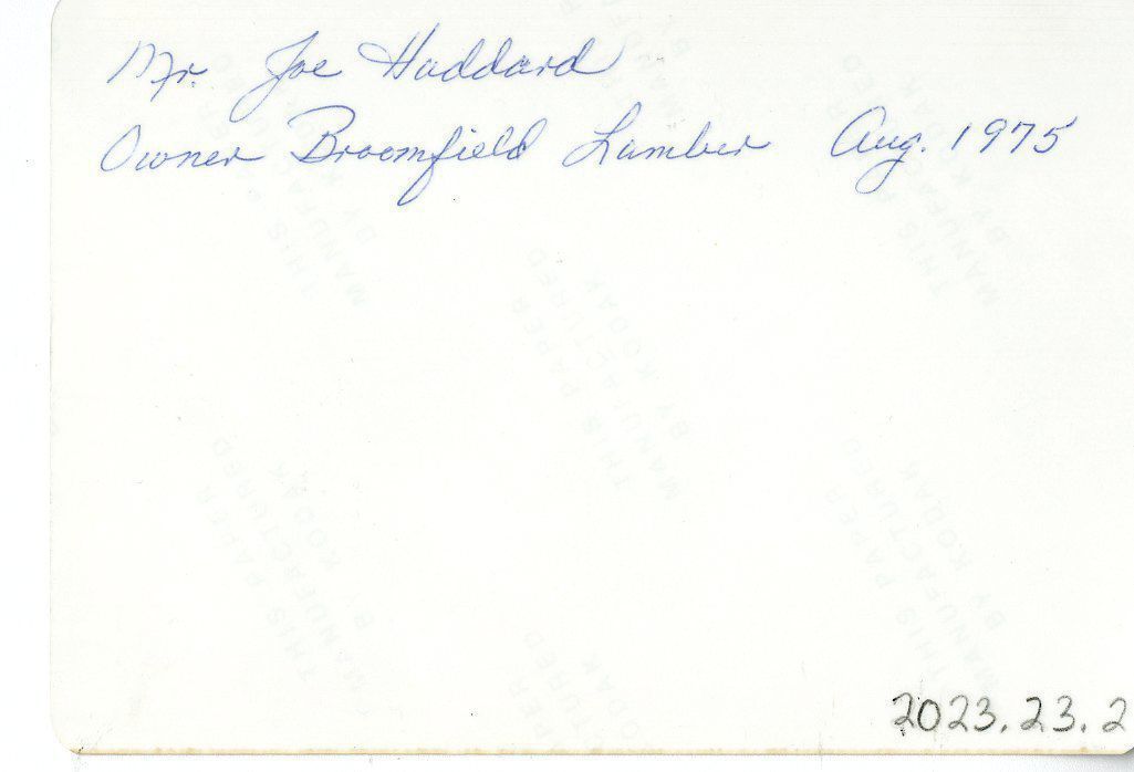 "Mr. Joe Huddard Owner Broomfield Lumber Aug. 1975"Lexicon