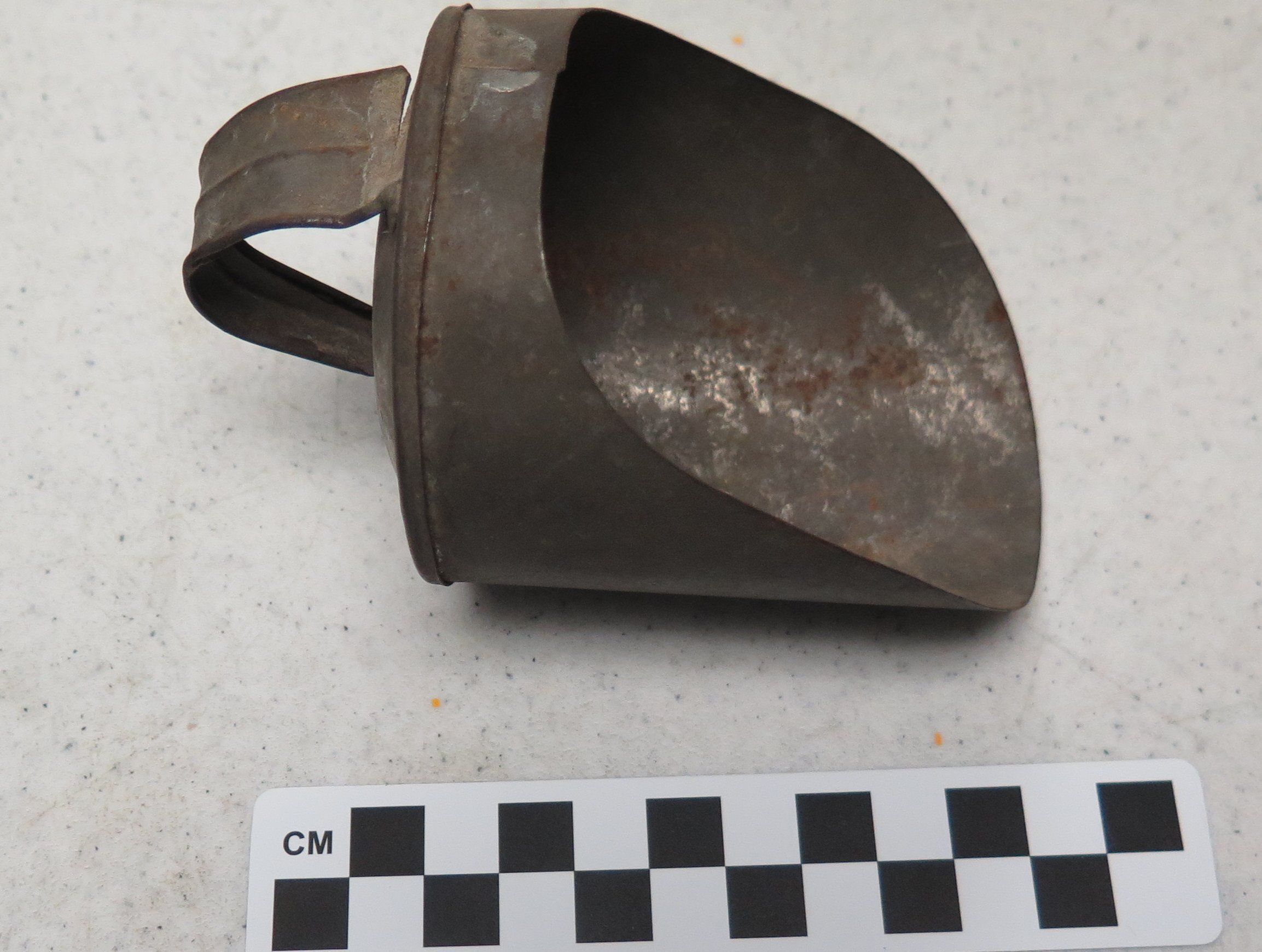 This is a metal scoop measuring 3"(H) x 5"(L).