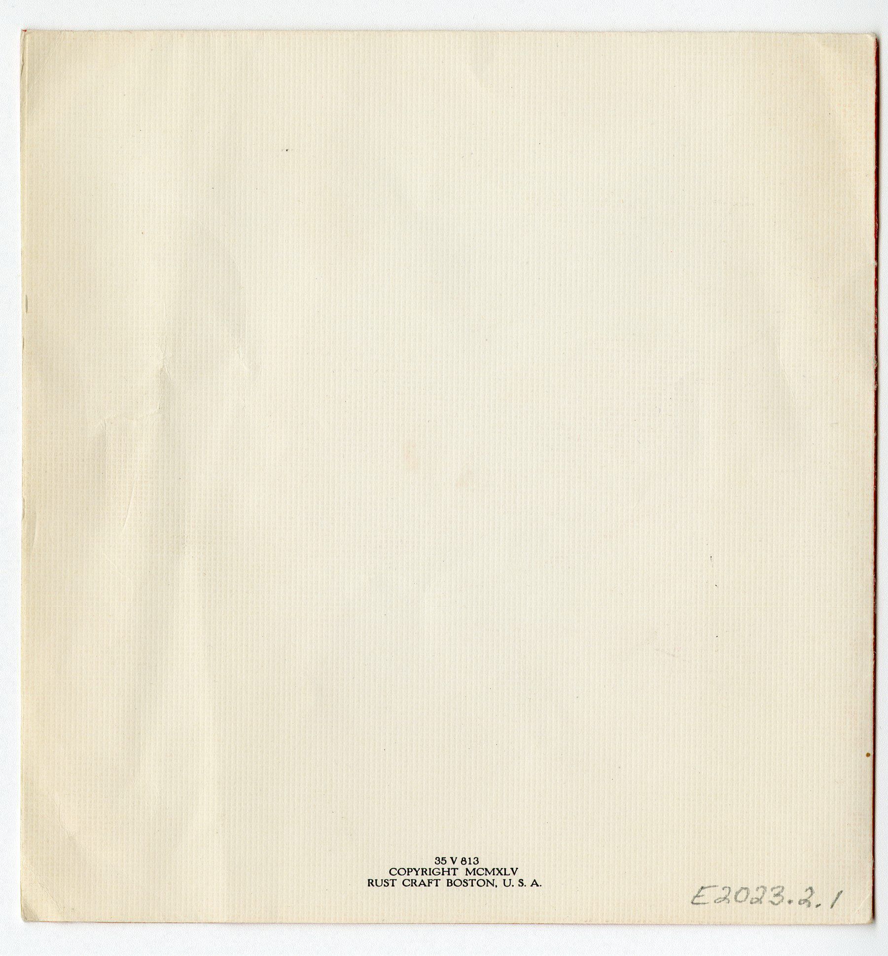 Backside reads "35 V 813 / Copyright MCMXLV / Rust Craft Boston, U.S.A."Collection