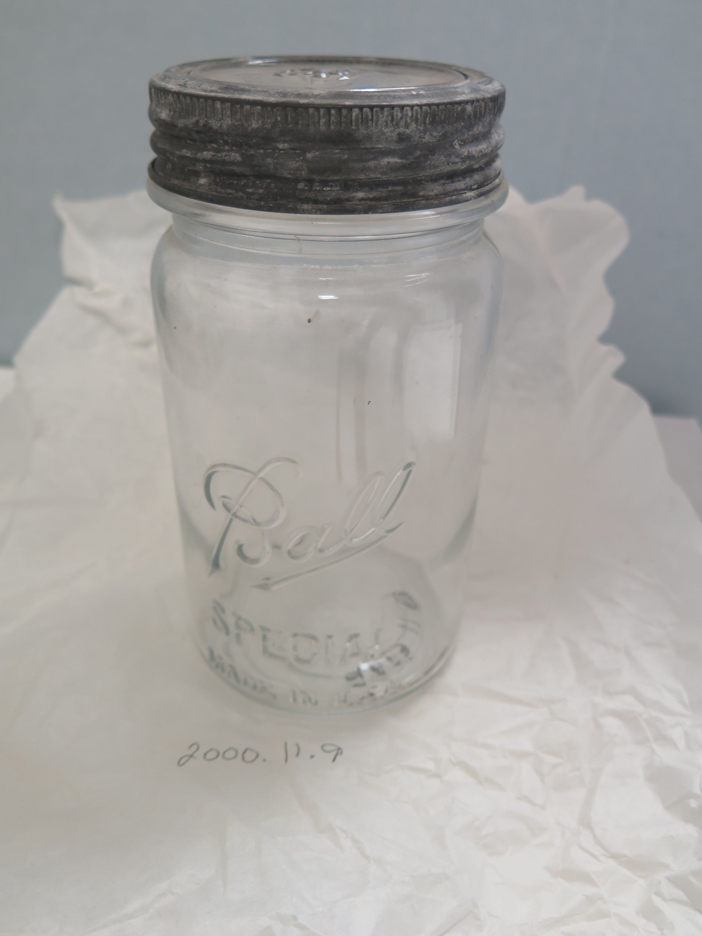 Side of jar.: Origsize: 7" (h) x 3.75" (dia); Origformat: Artifact