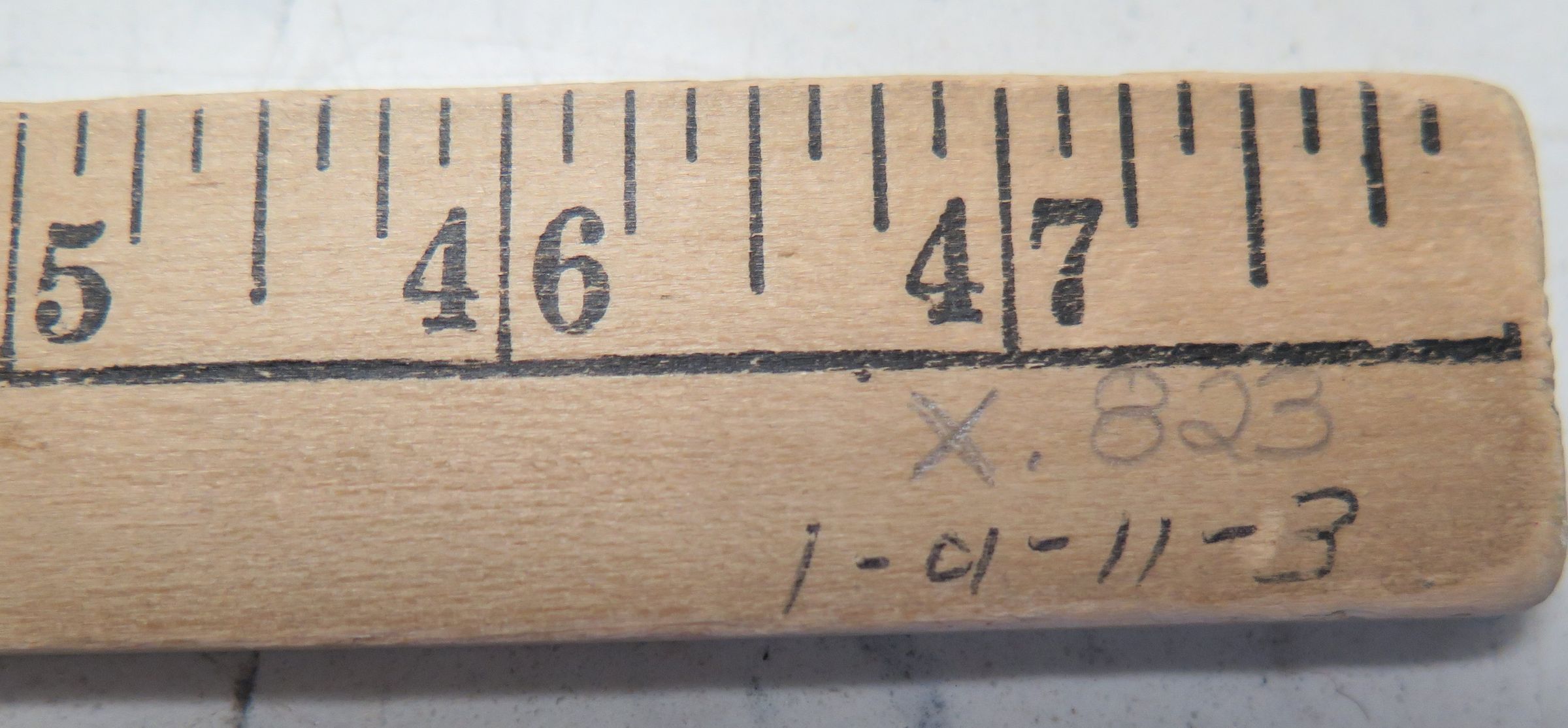 Yard sticks, 3 ea. Broomfield, but only 2 remaining. One of the yardsticks has been deaccessioned - see note. Description for the deaccessioned yardstick (Images 1 and 2 in the database record are of this one. There are no images of the other two): This wooden yardstick measures 1"(W) x 48"(L). In black print on both sides reads "ROCKY FLATS - BROOMFIELD FEDERAL CREDIT UNION "We go to Extra Lengths to Serve You" W.119th Ave., Broomfield 464-5066. TCollection