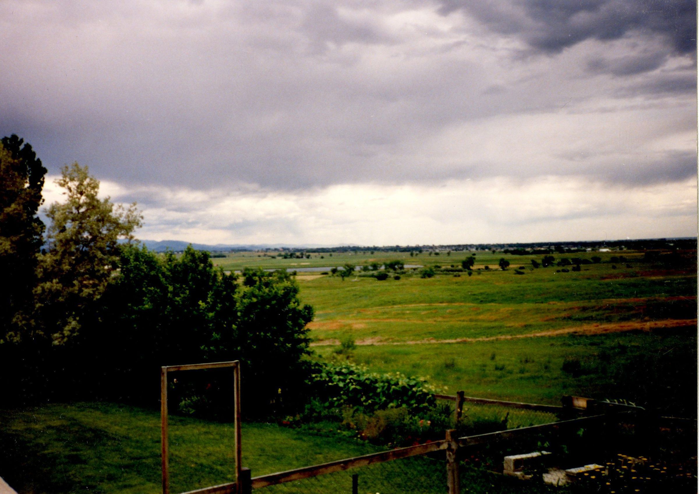 Color photograph looking out from a yard in the Lac Amora Neighborhood of Broomfield, CO. Photograph taken facing northwest.