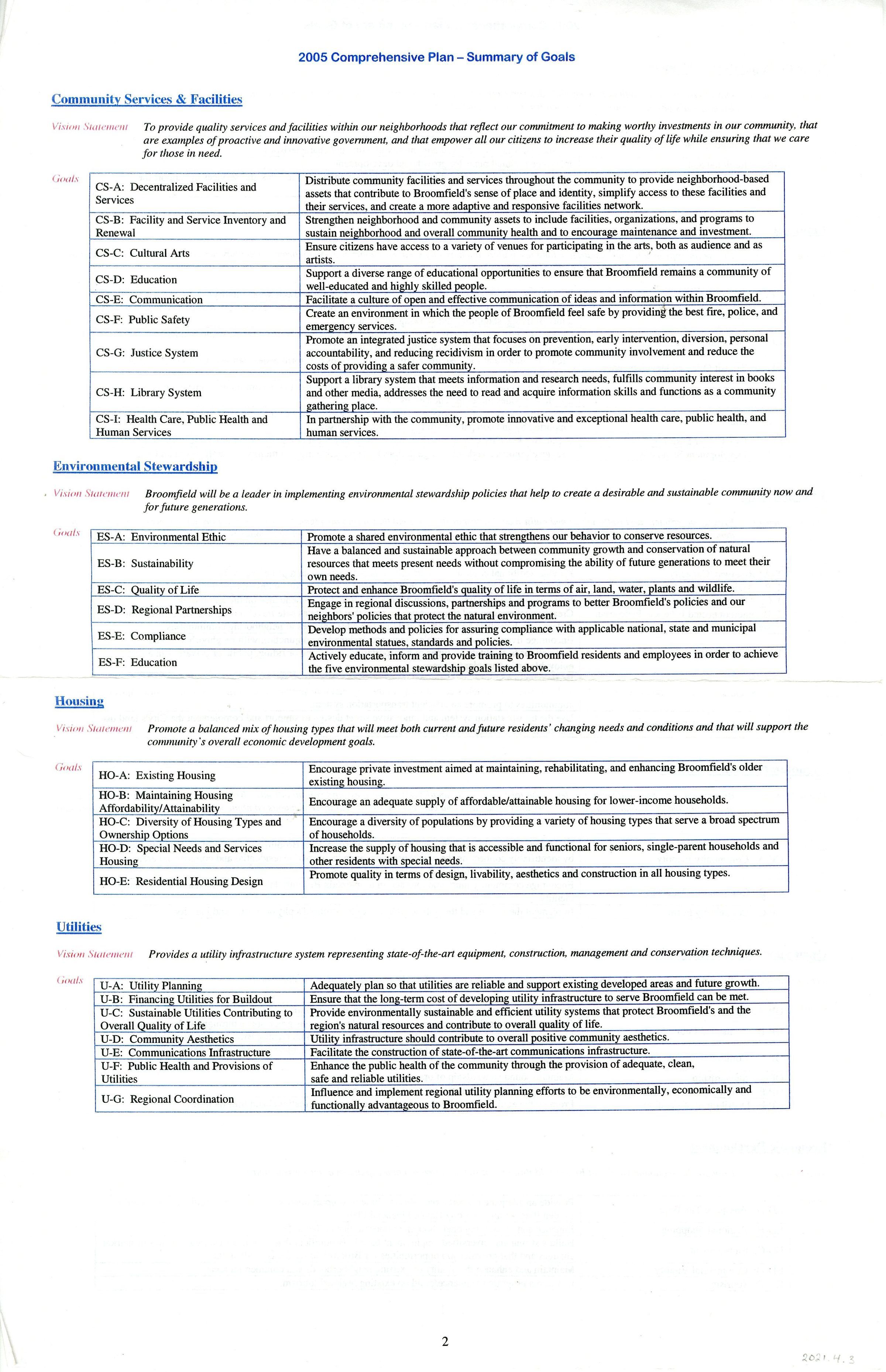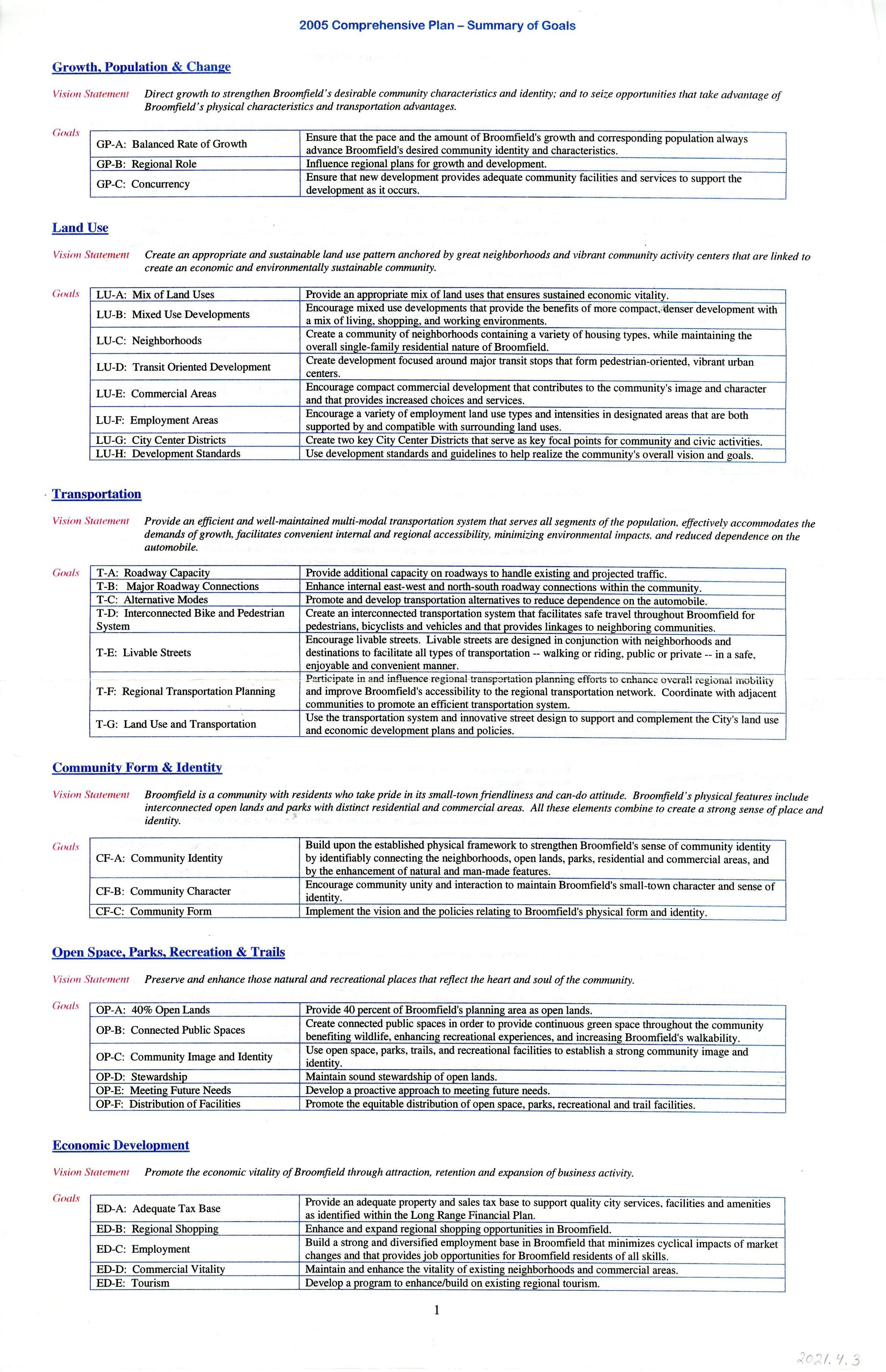 2005 City and County of Broomfield Comprehensive Plan - Summary of GoalsEntry/Object ID