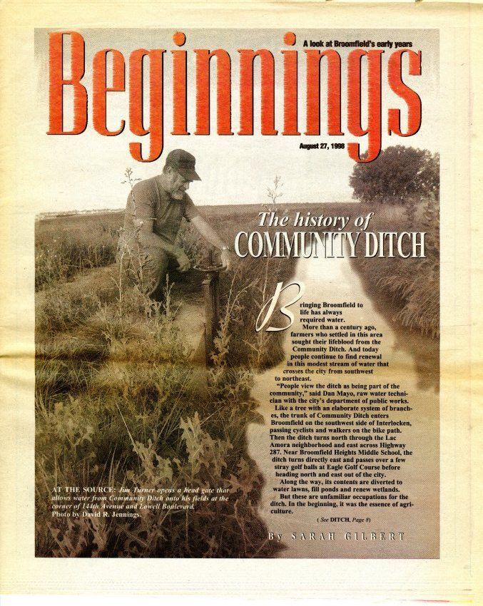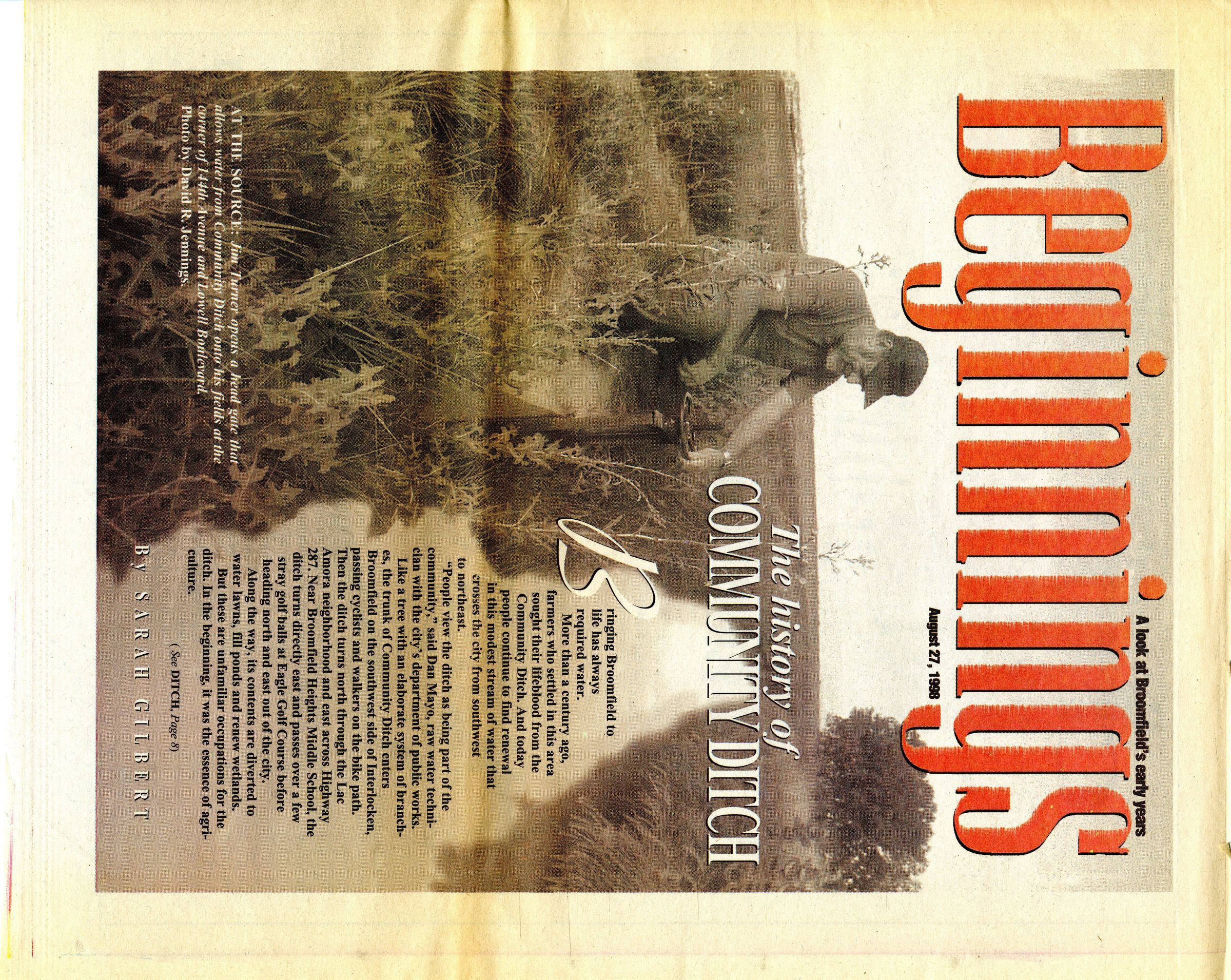 Newspaper, "Beginnings," August 27, 1998. Cover headline "The History of Community Ditch"Collection