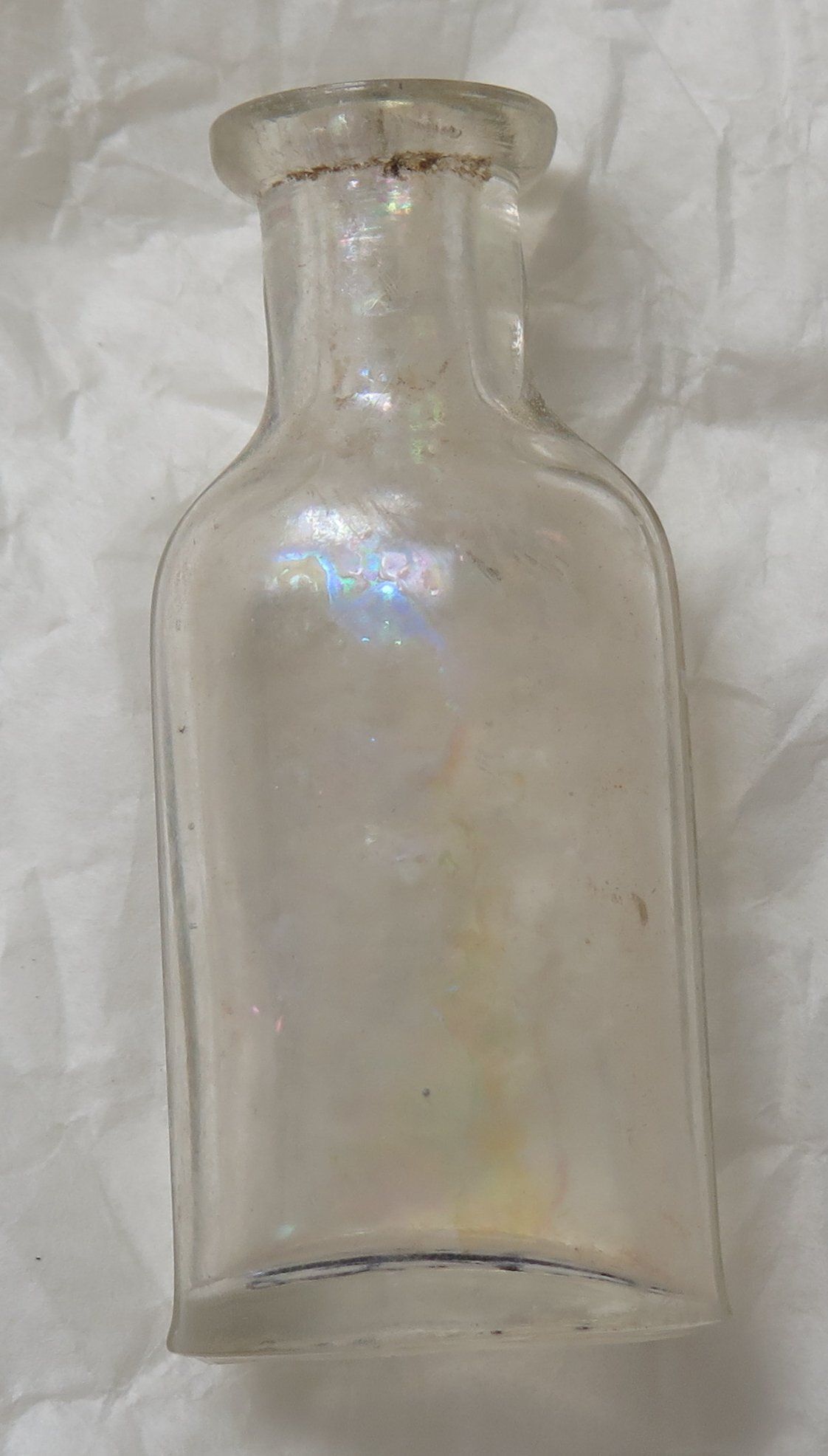 This is a clear glass jar without a lid. The jar measures 2.5" (h) x 1.25" (w).