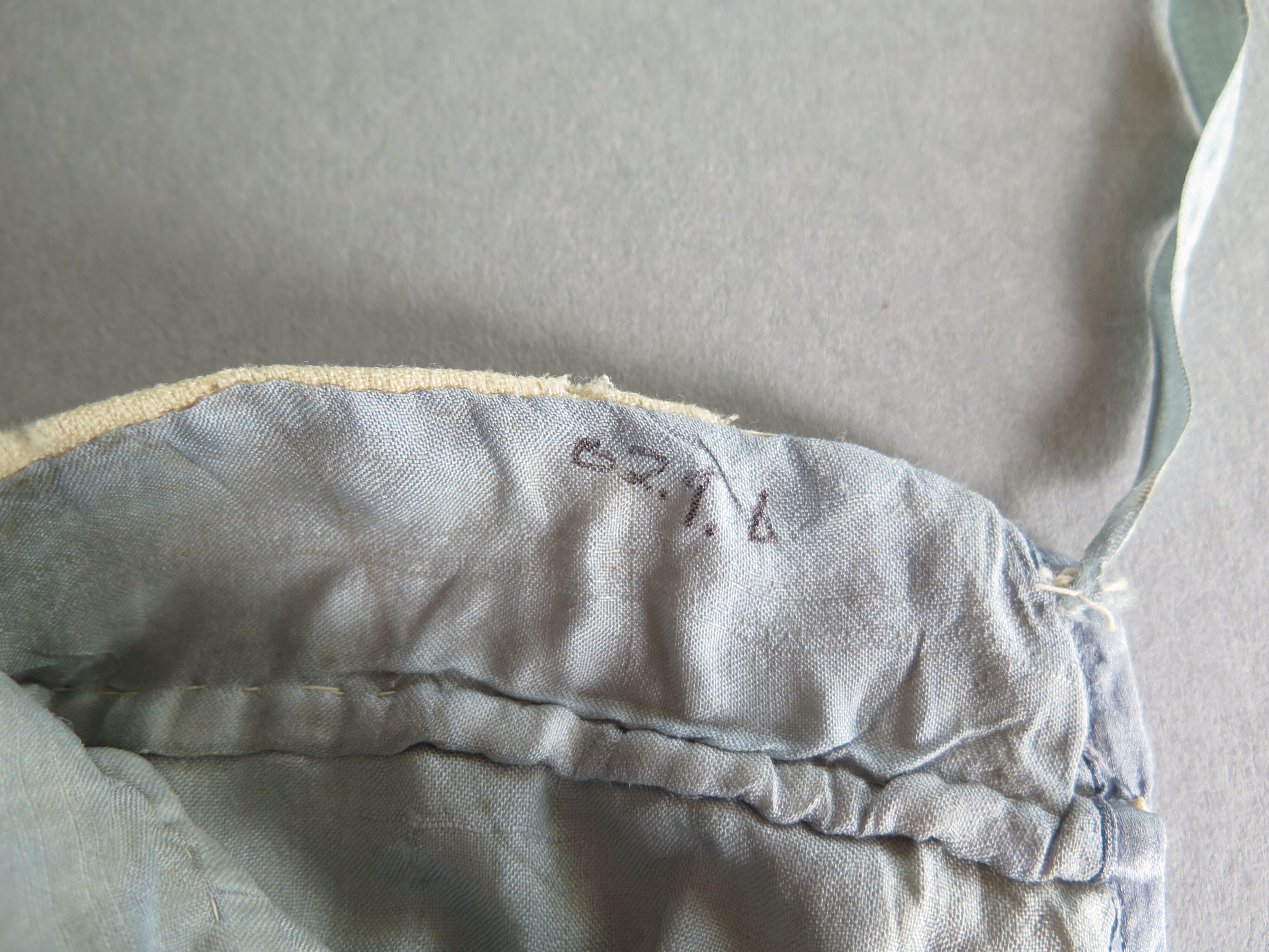Note: There was a dermestid infestation discovered during the 2015 inventory in this box, this item was damaged. All textiles in the box were vacuumed and frozen (APixley 7/18/2017).