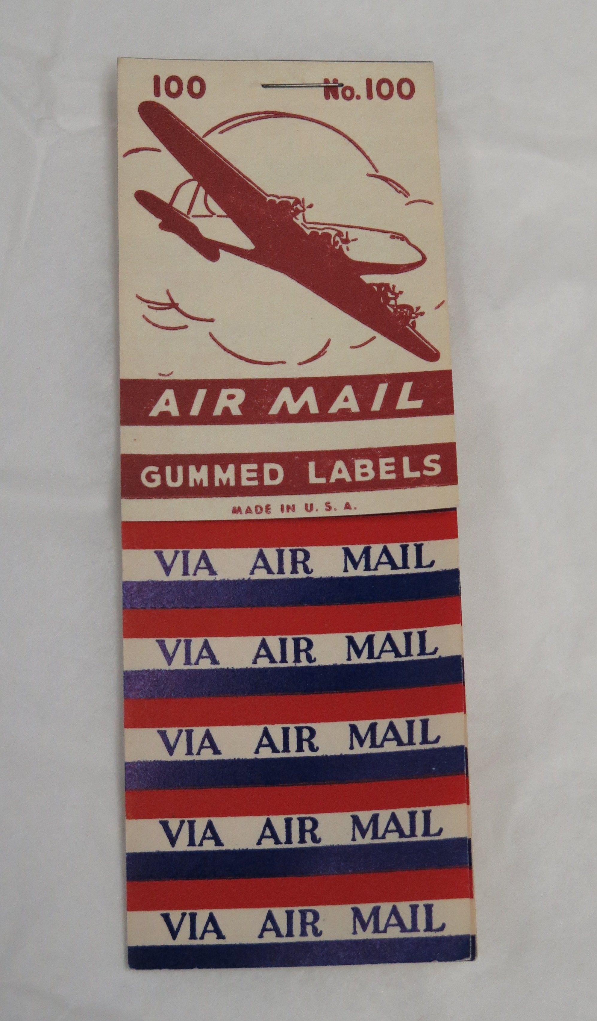 This is a set of air mail stickers on paper. The paper measures 2" (w) x 5.25" (l).