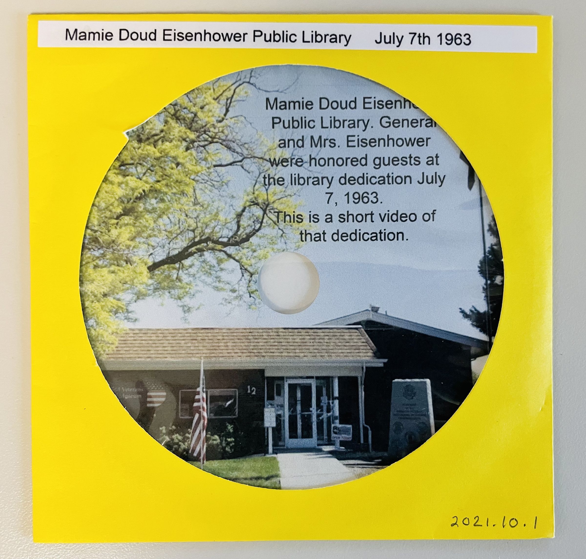 Film footage of former president Dwight D. Eisenhower and his wife Mamie Doud Eisenhower's visit to Broomfield on July 7, 1963 for the dedication of the new Mamie Doud Eisenhower Library at 12 Garden Center, Broomfield's first library. Film was taken by Carol Wiley who lived on 106 Hemlock Street. Colored film, no sound, very grainy. Film was digitized and saved on a CD.Collection