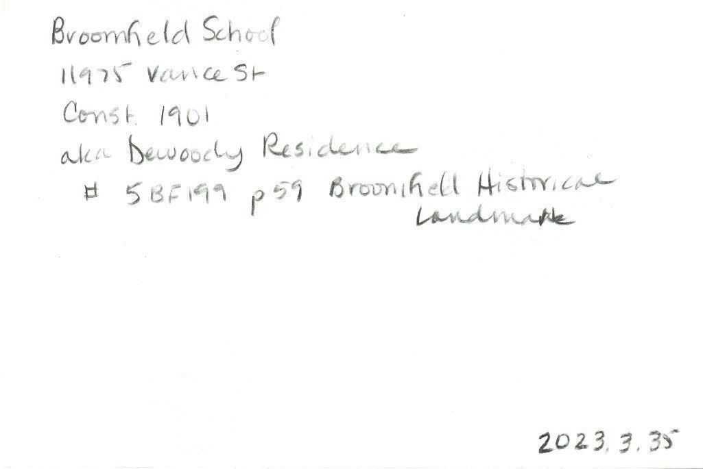 Broomfield School 11975 Vance StreetEntry/Object ID