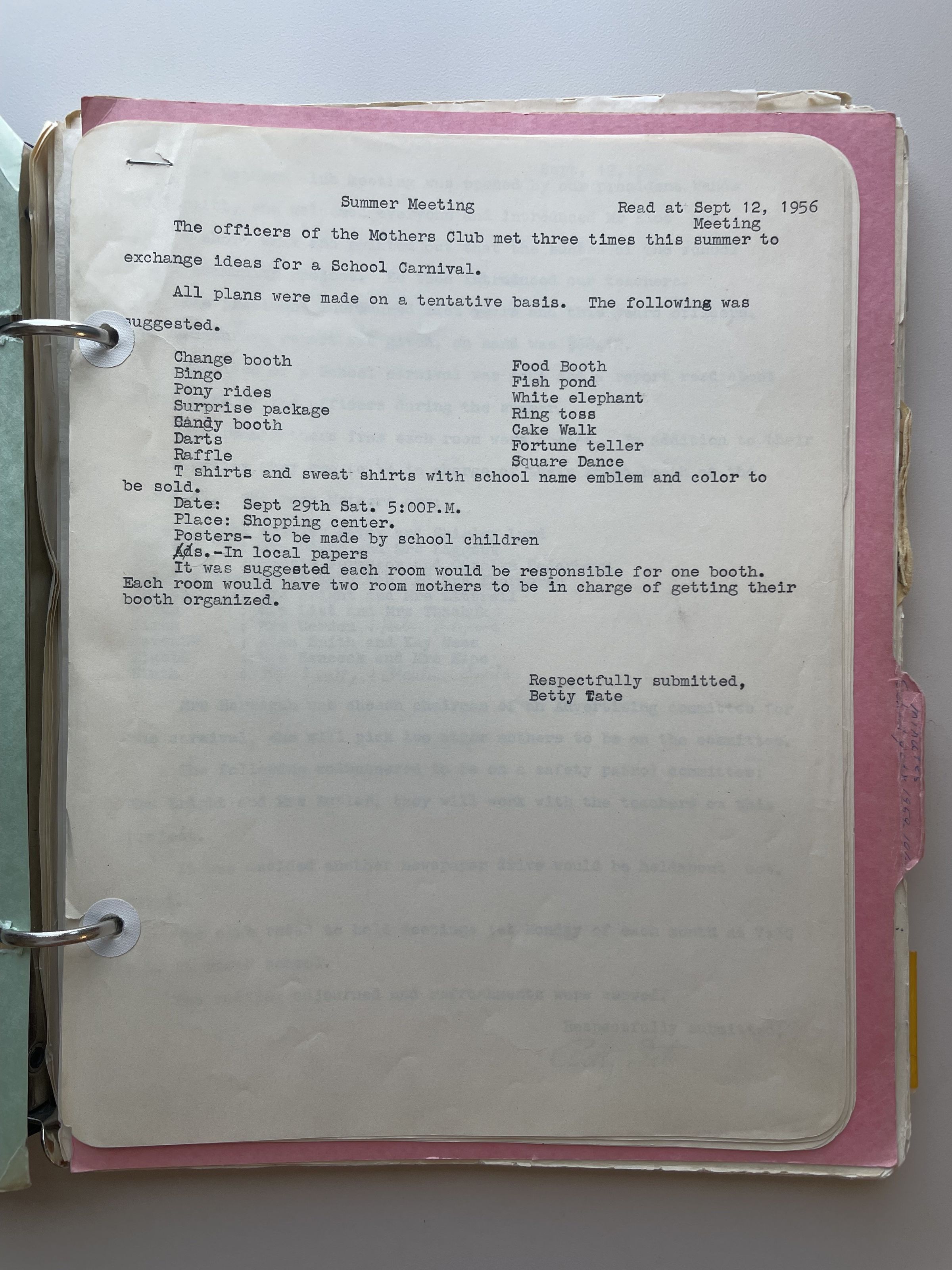 The black folder contains meeting reports and details of the Broomfield PTA Executive Board meetings from 1956 through 1961. It also includes letters, financial documents, rental contracts, bulletins, legislation policies, and much more. The documents are sorted by date/school years.Collection