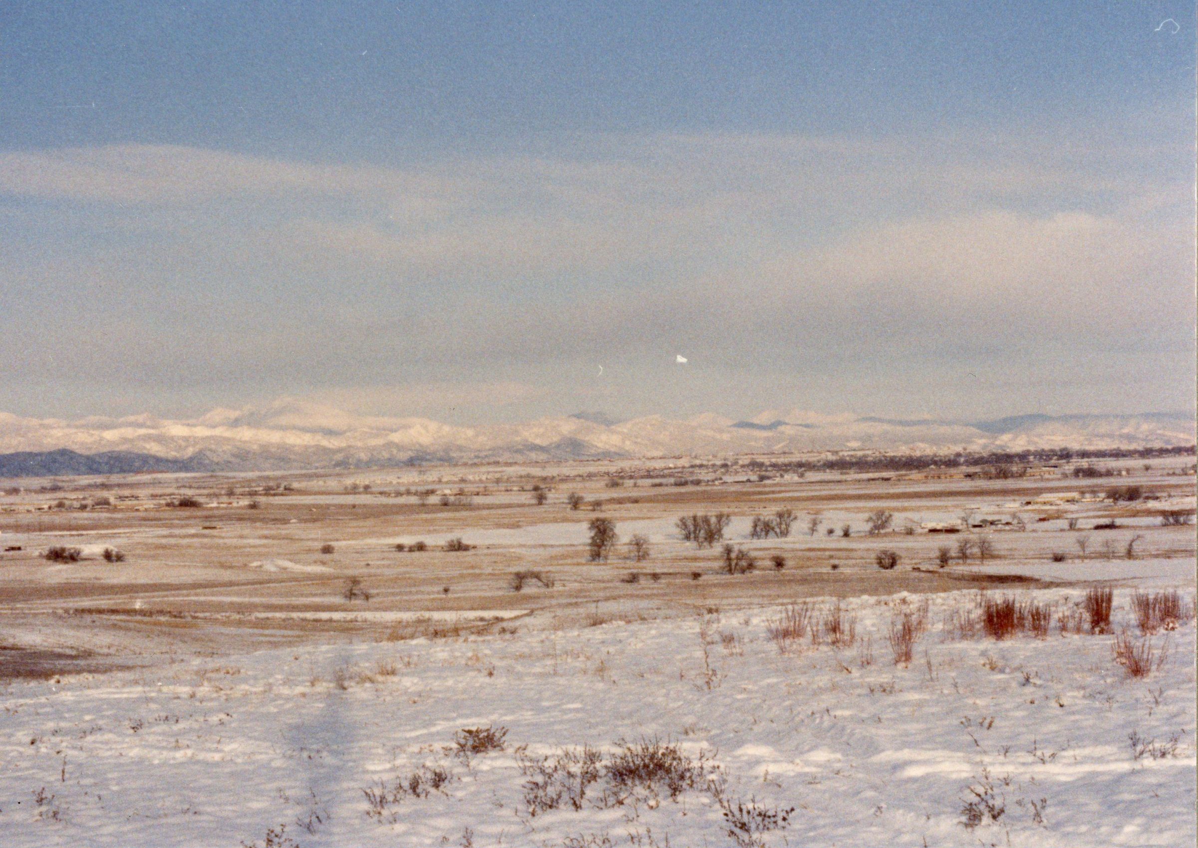 Color photograph showing a landscape. Photograph was taken facing west or northwest. Photograph taken in the Lac Amora Neighborhood of Broomfield, CO.