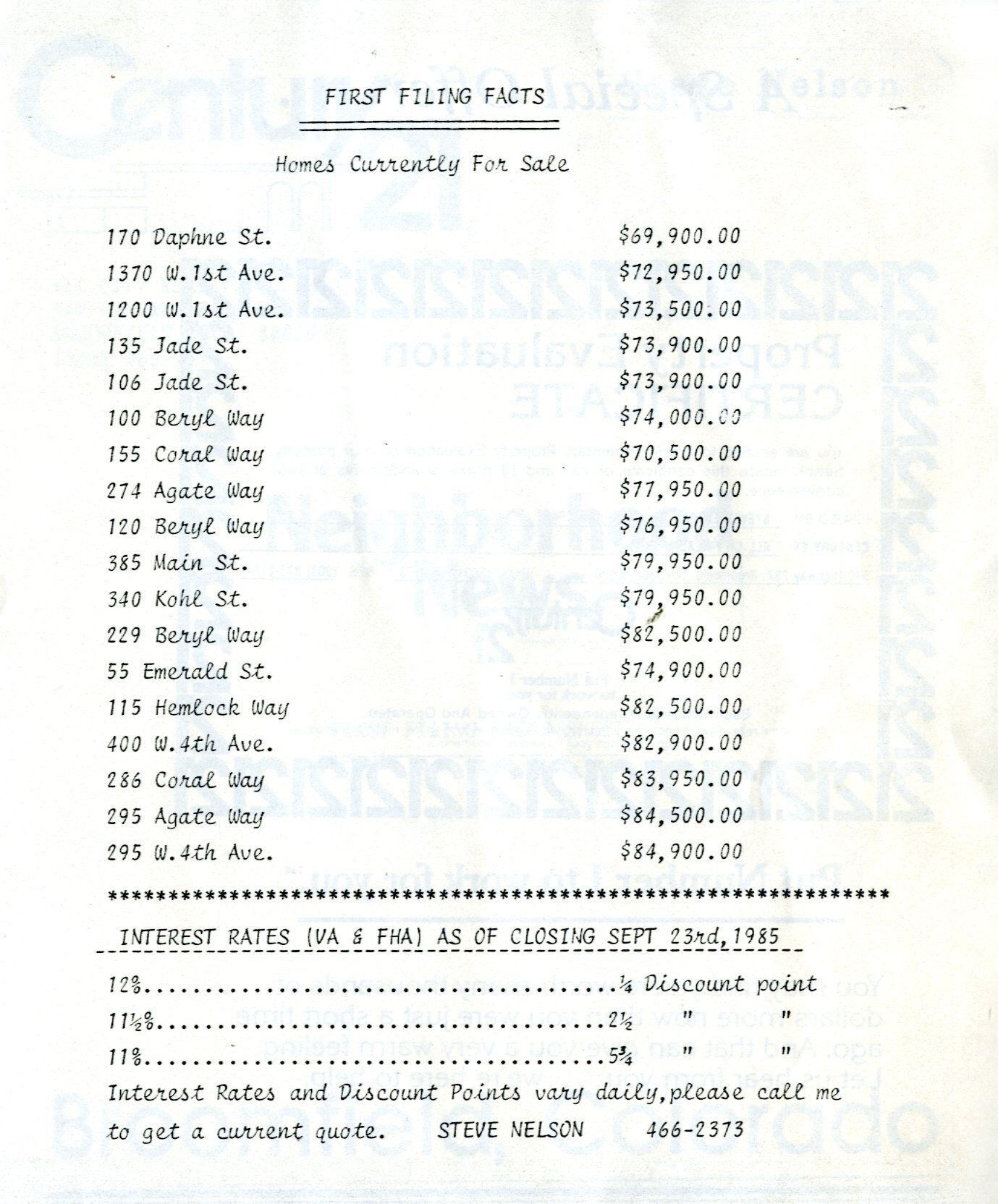Interest rates as of 9/23/1985, Est. date of flyer is late 1985Collection