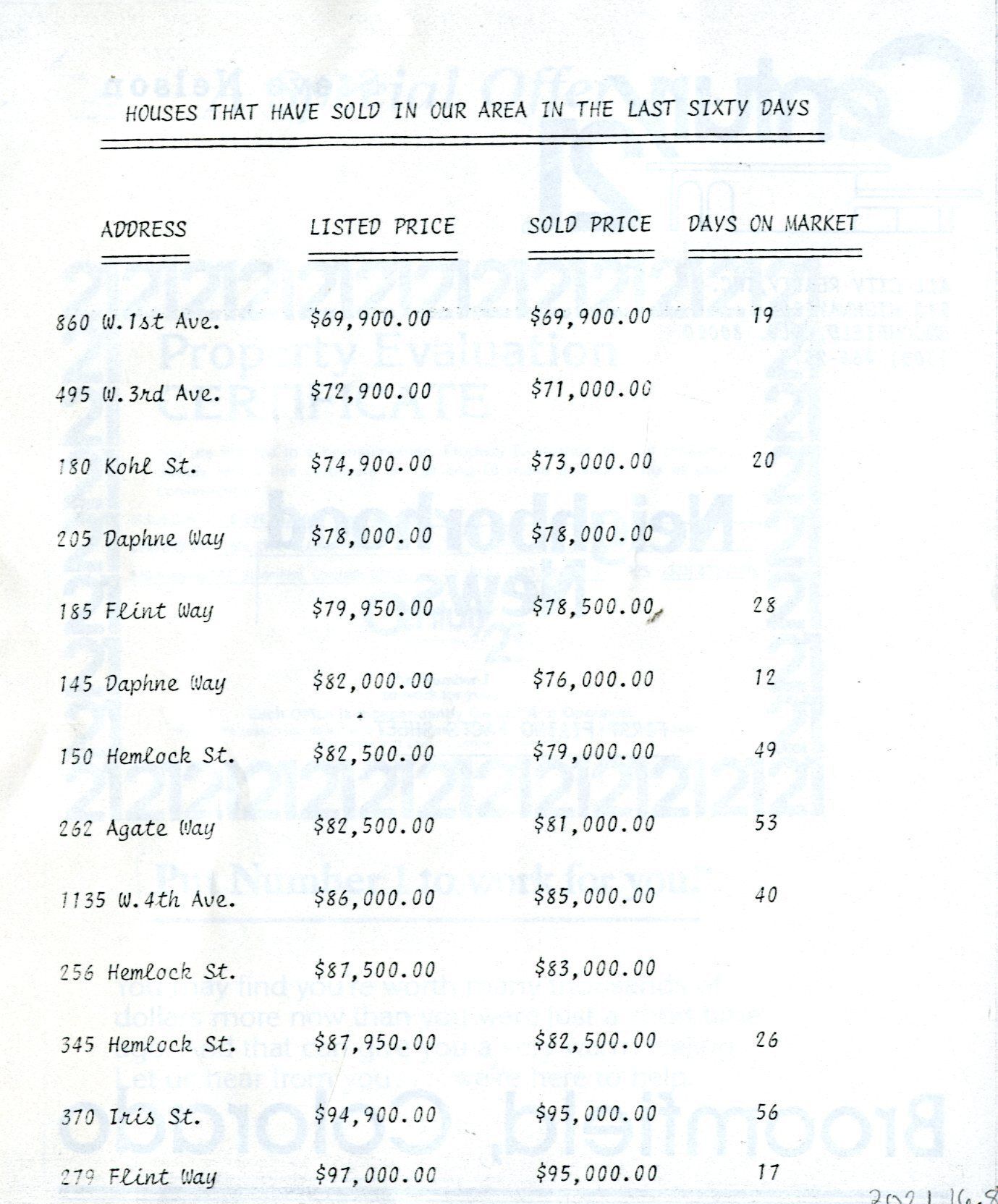 Houses that have sold in our area in the last sixty days and Broomfield homes currently for sale.