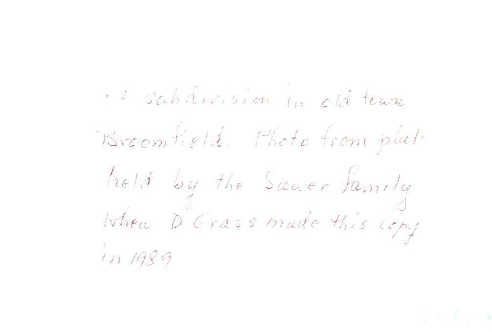 Pleasant View - Fifth Filing - Photo - subdivision - plat - 1989 1st subdivision in old town Broomfield. Photo from plat held by the Sauer family when D. Grass made this copy in 1989.