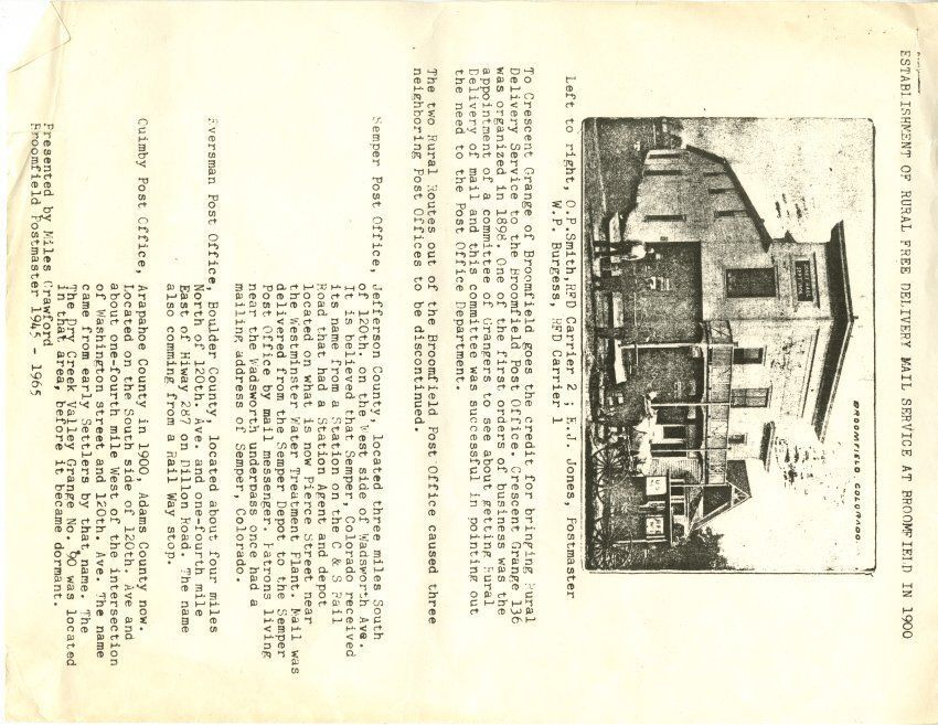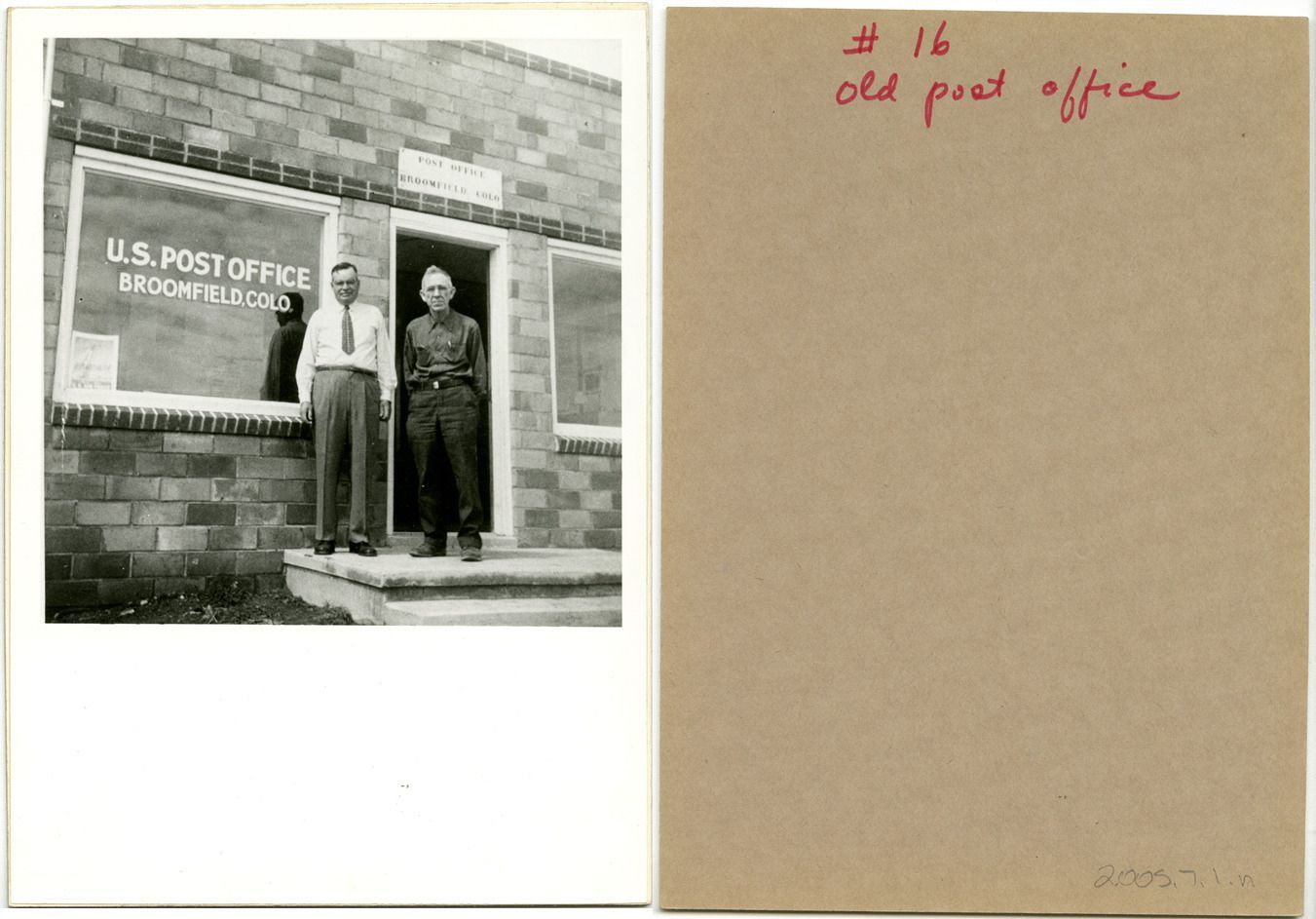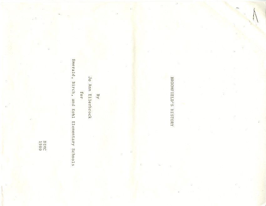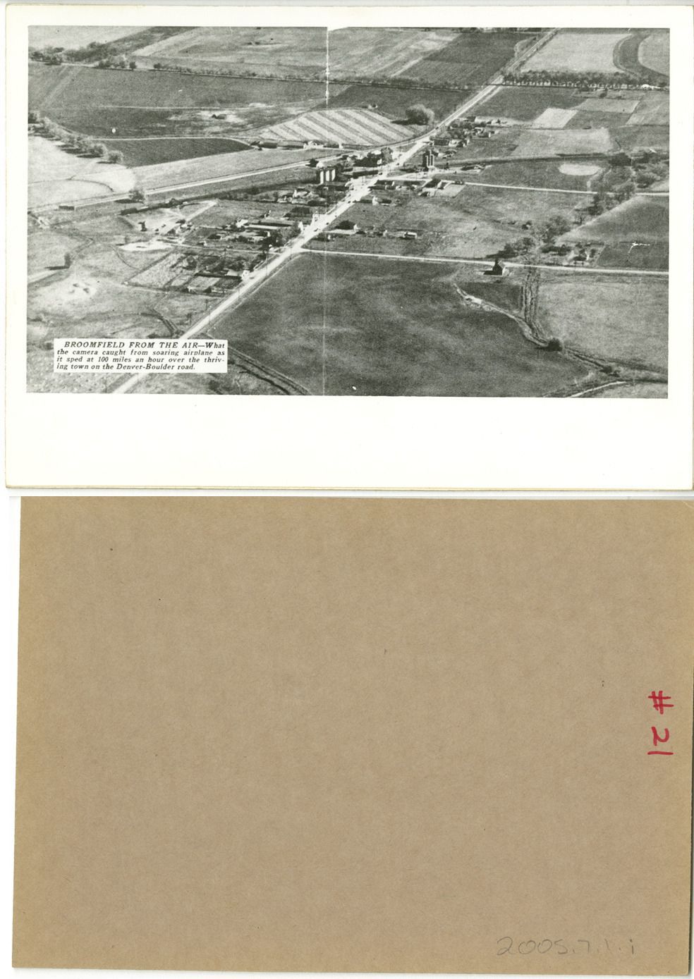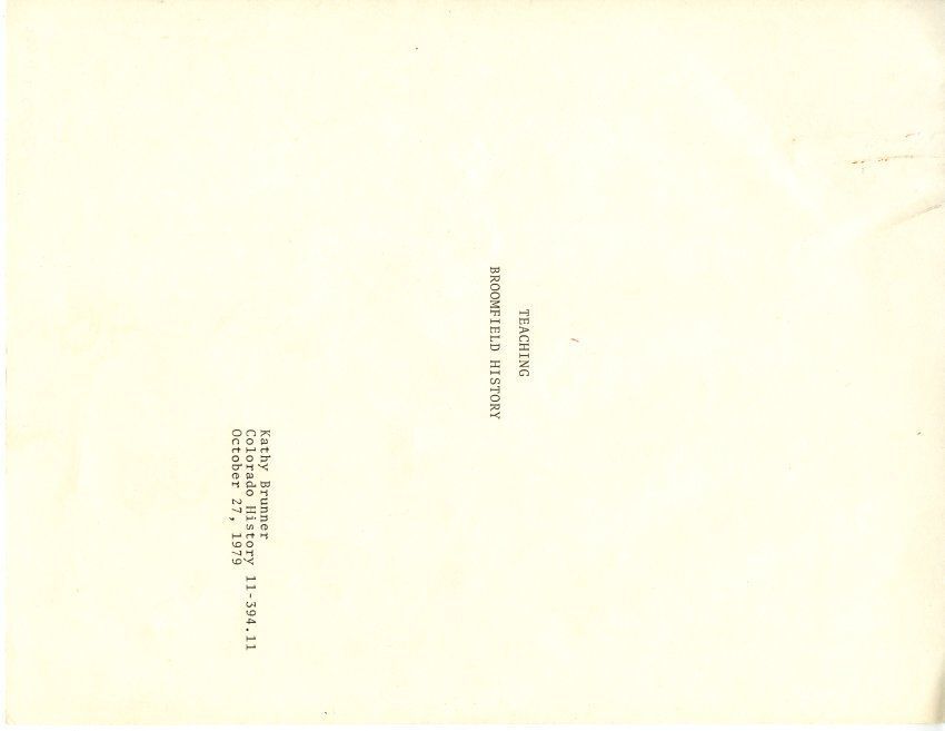 53 photos of "old" Broomfield, (2005.7.1.a - 2005.7.1.aaa) black and white, individually matted. Several pages of teaching material (2005.7.1.bbb - 2005.7.1.fff), typed.Collection
