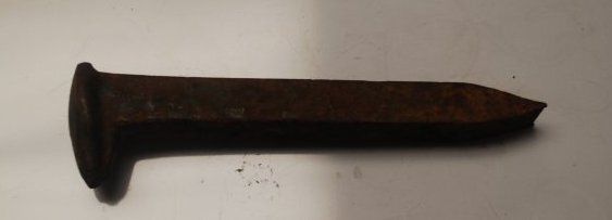 This is a rusty railroad spike. It measures 1.5" (h) x 6 " (l).
