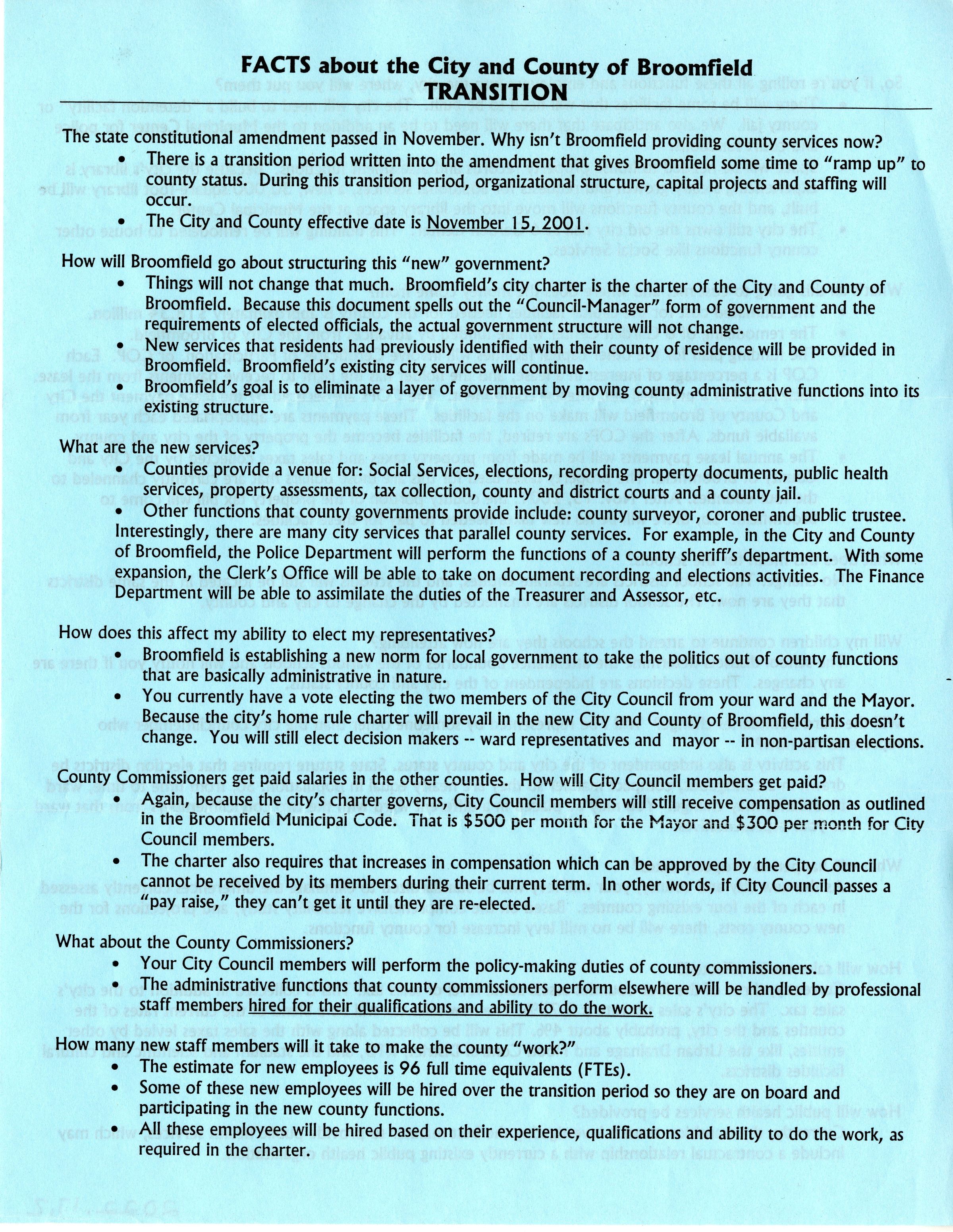 Facts about the City and County of Broomfield: Transition