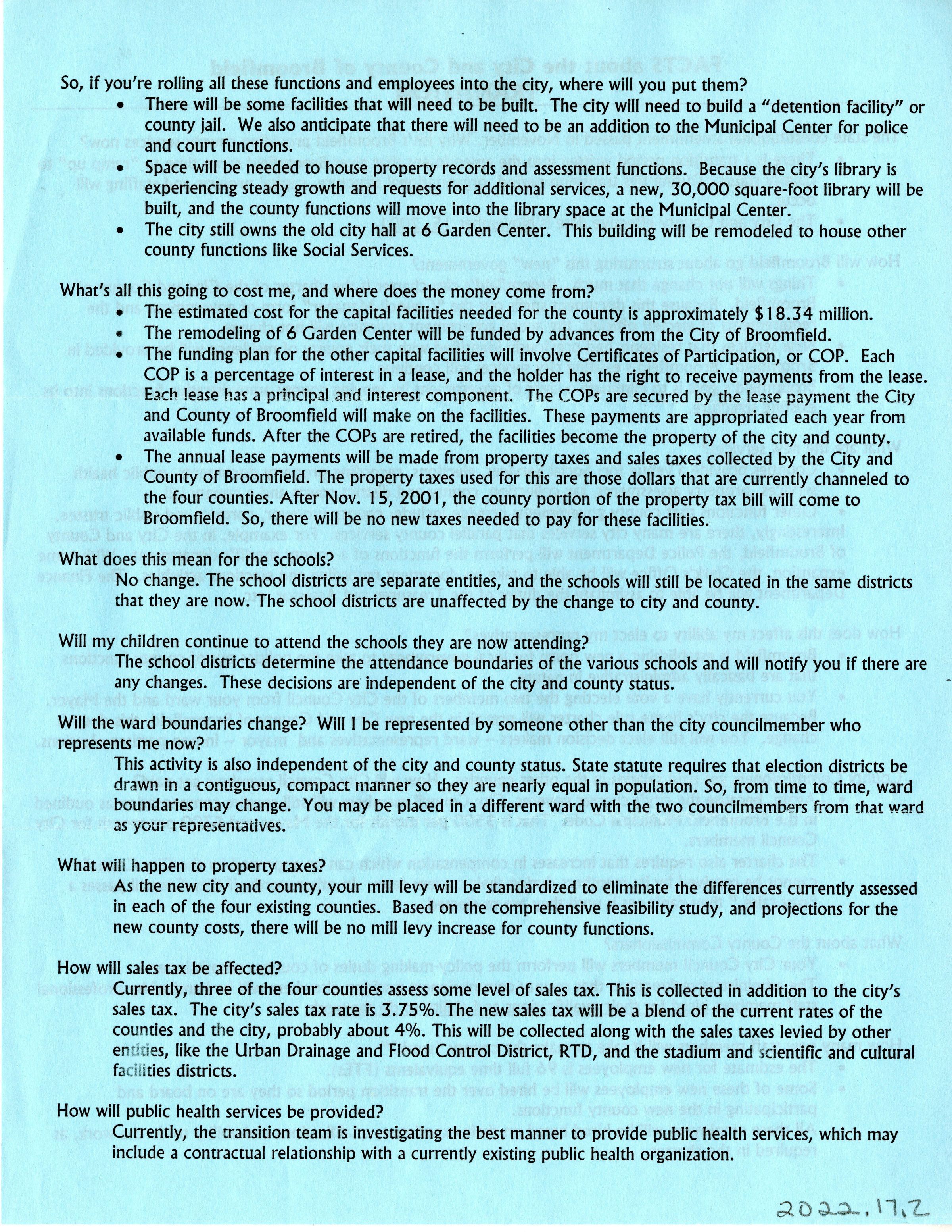 Document tittle: FACTS about the City and County of Broomfield TRANSITION