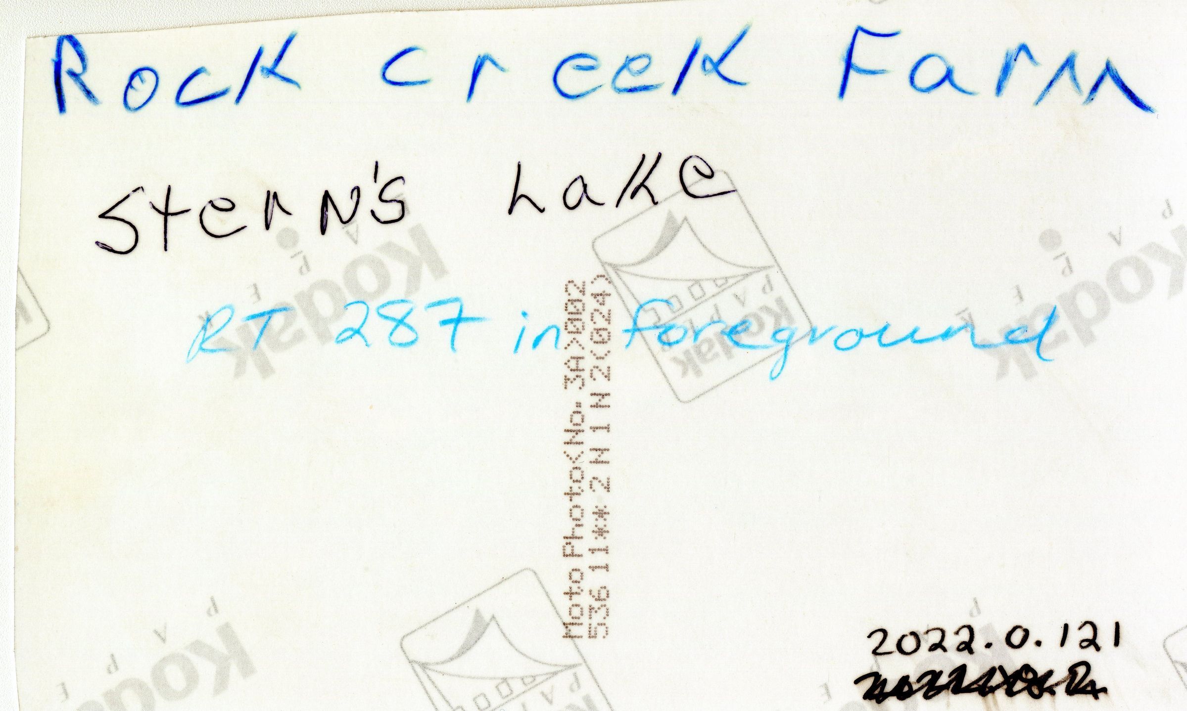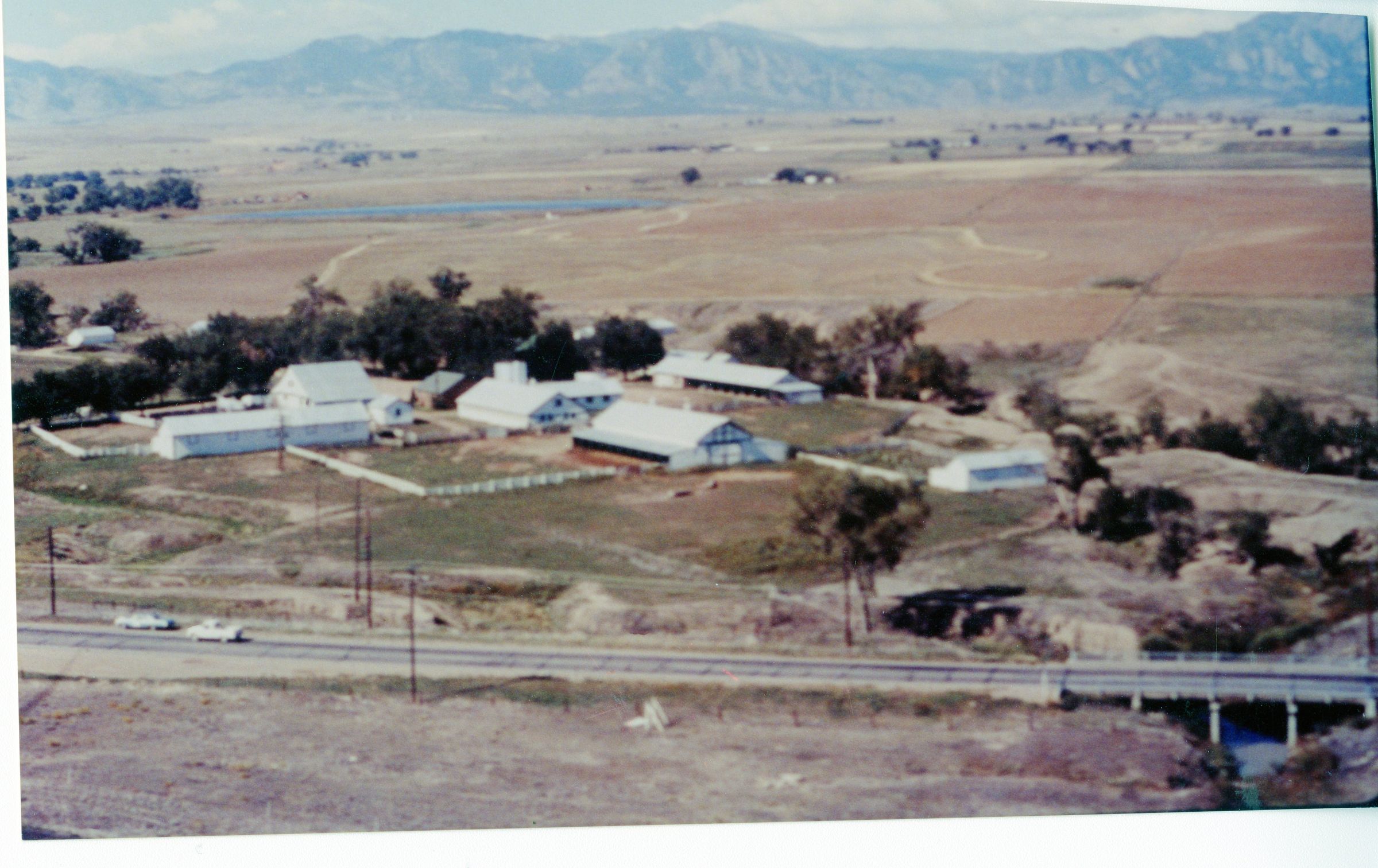 A colored photo of Rock Creek Farm with mountains and Stern's Lake in the background and 287 in the foreground.