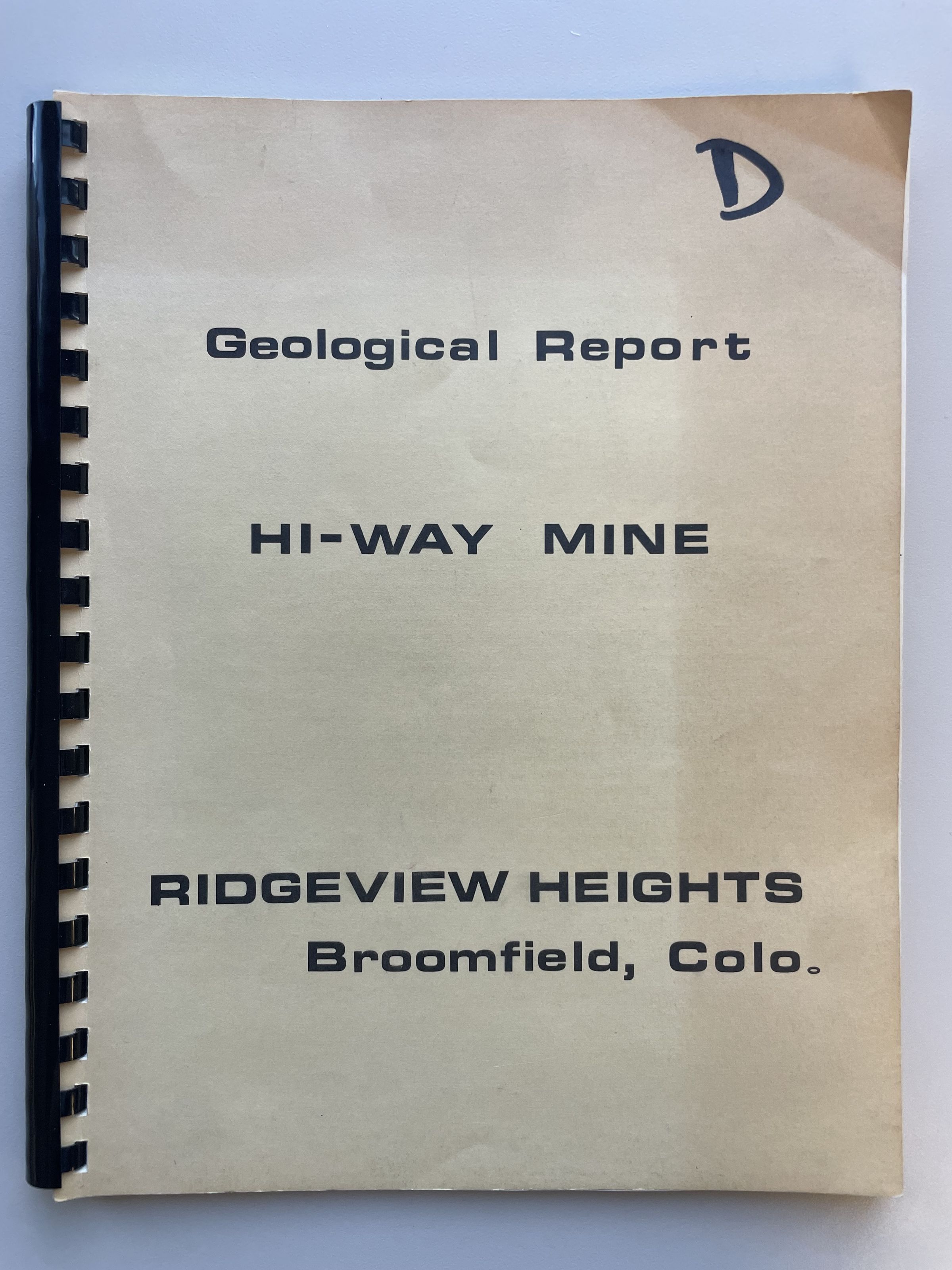 Geological Report / Hi-Way Mine / Ridgeview Heights / Broomfield, Colo.Entry/Object ID