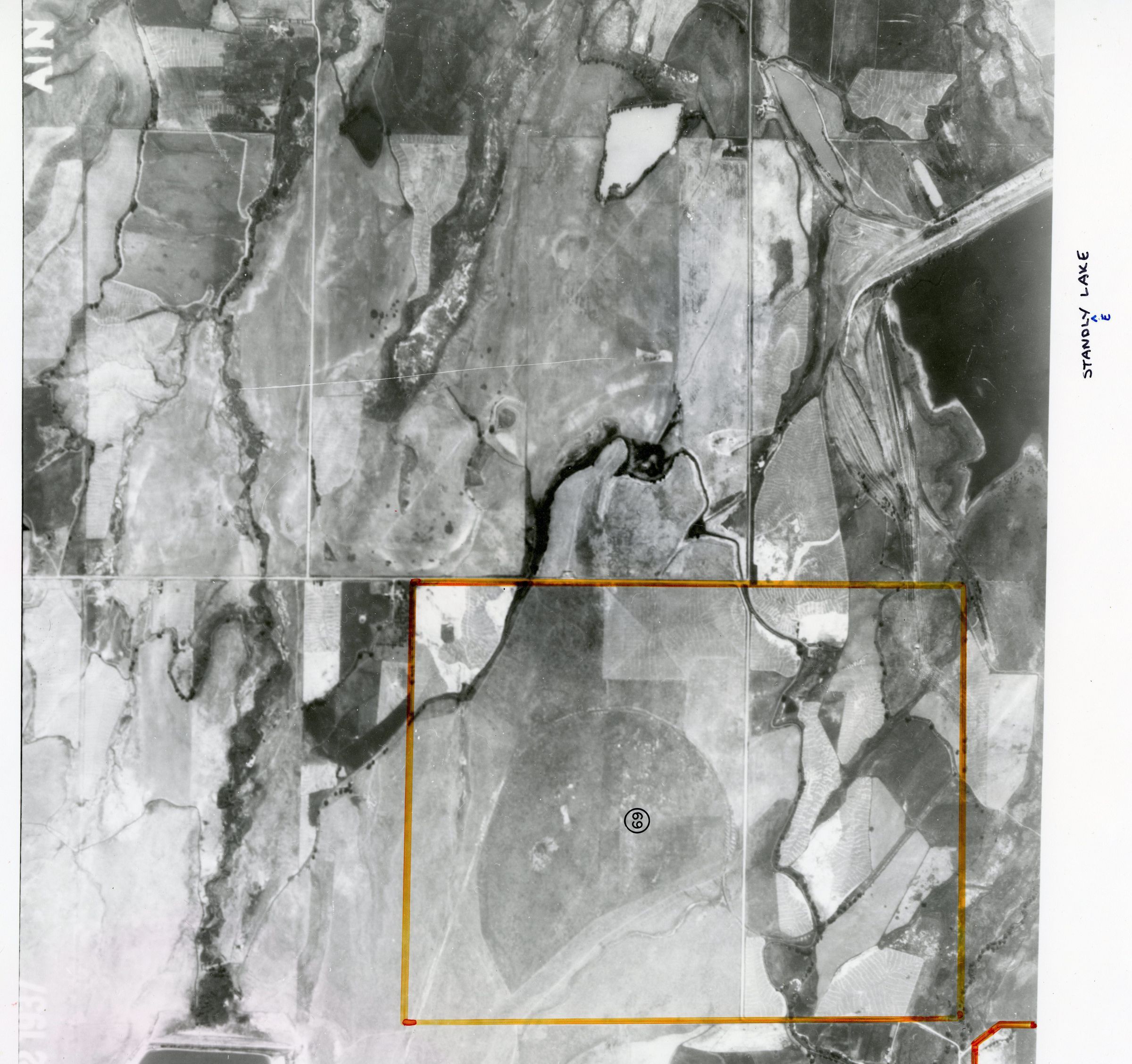 Item is a black-and-white aerial photograph of Broomfield taken on July 22, 1937. The code "AIN 48 70" is present in the top left corner. Some areas on the map are numbered, and their borders are highlighted by an orange marker. Standley Lake is labeled along the map's border in black pen. Attached to the map by a piece of red ribbon is a notice from the General Services Administration from the National Archives and Record Service confirming that the document is correct. It was signed by Charles E. Taylor, Acting Chief at the Center for Cartographic and Architectural Archives, on November 19, 1980. This paper is also marked with a bright orange seal.Photograph Details